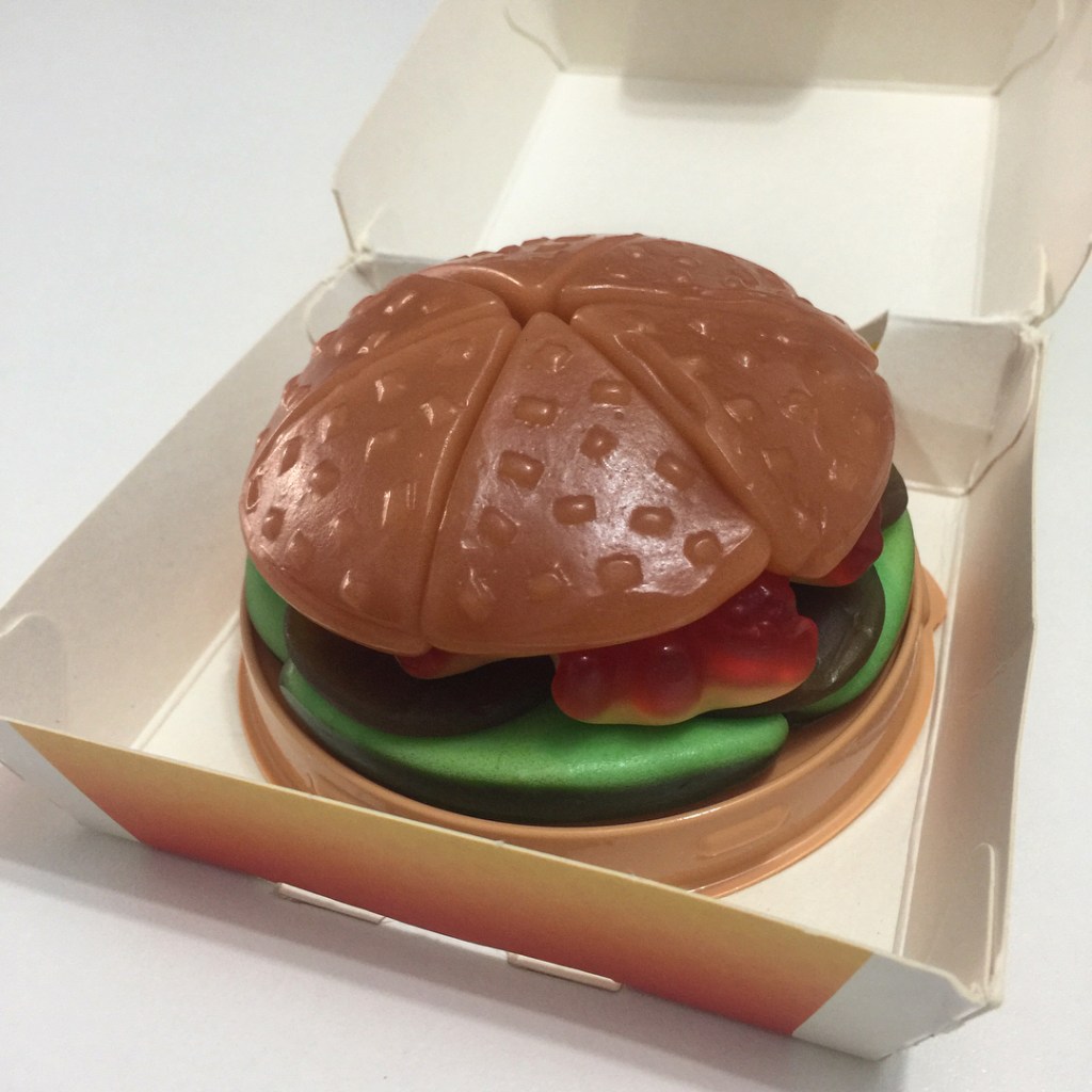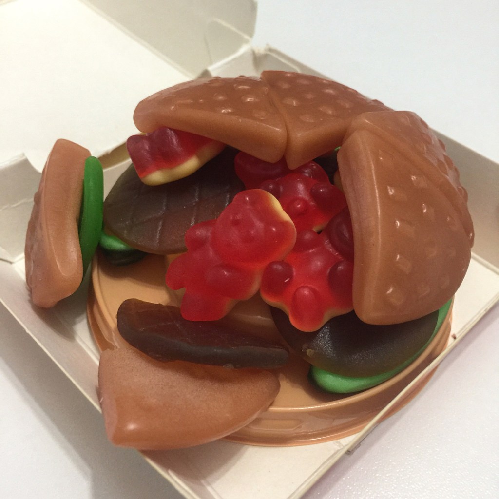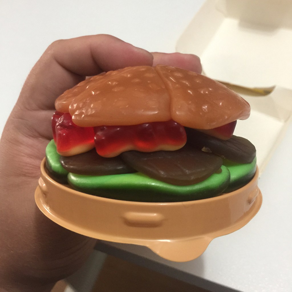 Candy Burguer, o hamburguer de gelatina! Super nota: 4/10 😂 Os sabor das gelatinas e a textura eram muuuiiito estranhos! Juro que tinha uma gelatina de gengibre ali no lugar dos tomates! #ExperimentaIsso #raindrops #itsugar #gummy #candy #gelatina #burguer #hamburguer #tasty #original #bear #instafood #delicia #gordice #baladegelatina #candies