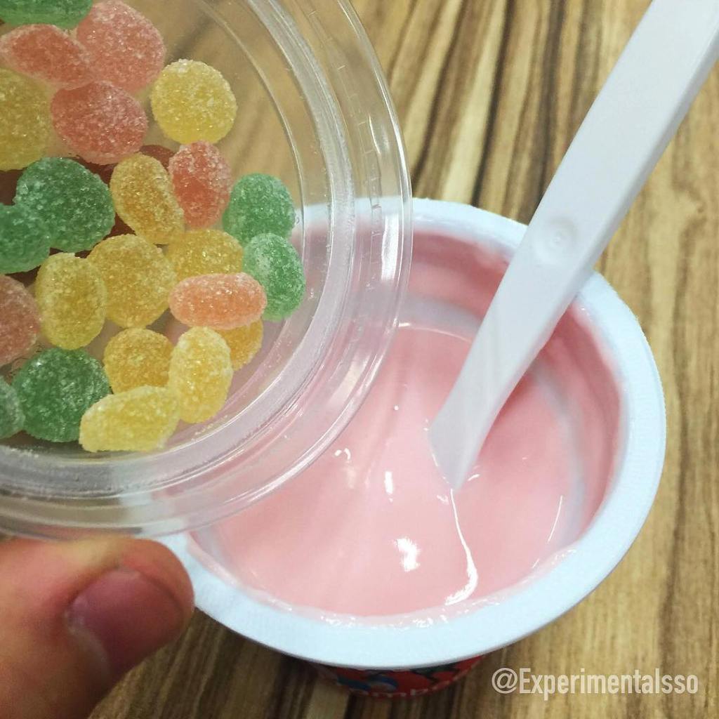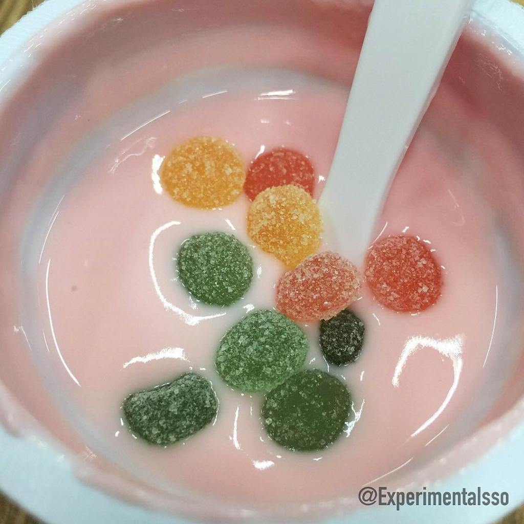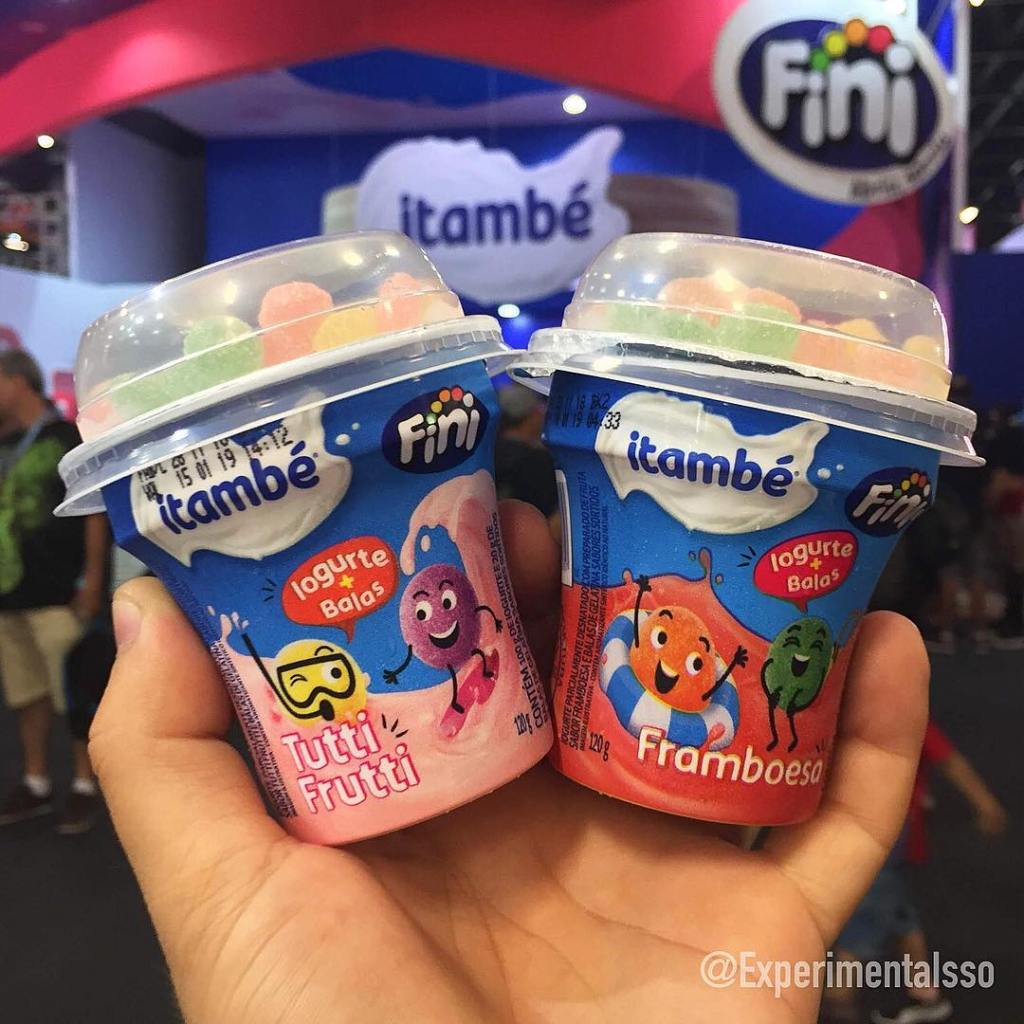 Esse ano a Fini aproveitou seu espaço na Comic Con Experience para divulgar seu lançamento em parceria com a Itambé! Iogurte nos sabores Framboesa e Tutti-Frutti com um potinho de balas especialmente desenvolvidas para serem misturadas com o iogurte! A combinação parecia um pouco estranha na proposta, mas não posso negar que achei a mistura das balinhas com o iogurte de Framboesa incrível! 😋 Nota: 8/10! As balinhas são bem pequenas como vocês podem ver nas fotos, então não tem problema na hora de mastigar! Elas tem uma textura que fica entre as balinhas tradicionais da fini e uma balinha de “goma”! A versão de Tutti-Frutti também era gostosa, mas na minha opinião não bateu a de Framboesa! O iogurte podia ser adquirido na lojinha da Fini por 4 reais ou vencendo o desafio da Realidade Aumentada! 😆