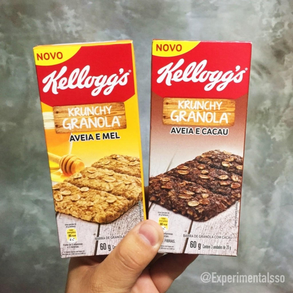 Finalzinho de tarde chegando, bateu aquela fominha? Que tal uma barrinha de granola? Já que não temos mais a Nature Valley no Brasil, tivemos que dar uma chance ao novo! Essas barrinhas da Kellogg’s são feitas 50% à base de aveia integral além de farinha de arroz, milho e trigo, e vem em 2 sabores: “Aveia e Mel ” e “Aveia e Cacau”. São muito gostosas! Docinhas e muito crocantes! Sem contar que são bem levinhas, perfeitas pra fazer um lanchinho de manhã ou no final da tarde! Nota: 9/10! Comprado no Supermercado Extra!