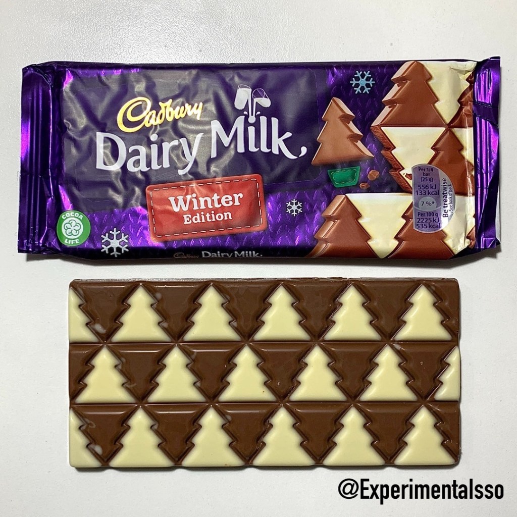 Como está sendo seu 2020? ☺️ A galera lá do Reino Unido começou bem o ano com essa edição de inverno da barra de chocolate mesclado da Cadbury! 😍 Ela é deliciosa! A parte de baixo é de chocolate ao leite e a parte de cima é de chocolate branco! Ao invés dos “quadradinhos” tradicionais, essa barra tem pequenos pinheirinhos perfeitamente encaixados! Eles inclusive “quebram” nesse formato! É gostoso até de ficar olhando os pedacinhos! 😅⠀