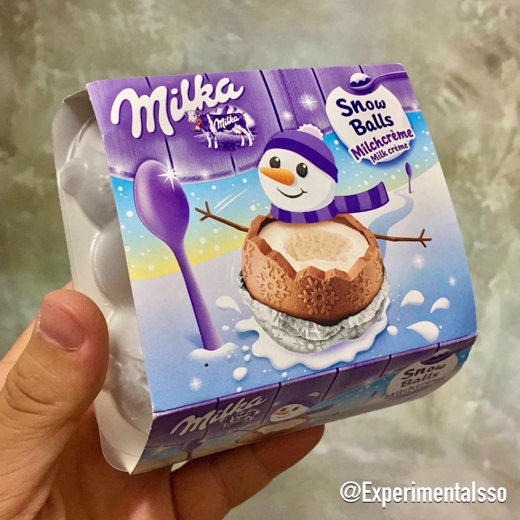 Pra quem acompanhou nosso instagram no Natal passado vai ter a impressão de já ter visto esse post. Na verdade ano passado provamos as Snowballs da Cadbury que compramos em Londres, mas essas aqui são as SnowBalls da Milka, e vieram da Rússia! Apesar disso, as Snowballs das duas marcas são praticamente iguais! Muitos já sabem que a Cadbury e a Milka são marcas da Mondelez (assim como a Lacta), então é muito fácil encontrar produtos muito parecidos dessas marcas. Essas bolinhas lembram muito os ovinhos de Oreo que postamos no início do ano passado, na Páscoa! A proposta é a mesma, é uma pequena bolinha, com uma fina casquinha de chocolate ao leite que guarda um recheio cremoso de baunilha dentro dela! A bolinha deve ser “quebrada” na parte superior, e o recheio consumido com a (micro) colher que vem na embalagem! 😆 É mais fácil e mais gostoso comer tudo junto, já digo isso…😂 Da mesma forma que as Snowballs da Cadbury, o chocolate derrete bem rápido em contato com a mão, então o “trabalho” tem que ser rápido! 👍 Se você tiver a oportunidade, não deixe de experimentar!⠀