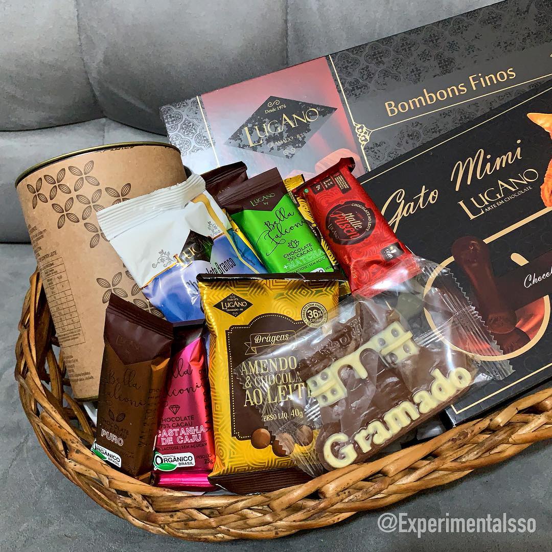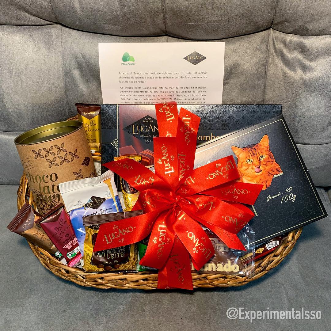 Pra quem não conhece a nossa história, não deve nem desconfiar que nós do @ExperimentaIsso moramos praticamente toda vida no Rio Grande do Sul! 😄 Posso dizer que uma das melhores coisas que tínhamos no RS eram os chocolates de Gramado! E para nossa alegria a Lugano acabou de abrir uma cafeteria dentro de um Pão de Açúcar aqui de São Paulo! Isso significa que agora temos um pouquinho DO MELHOR da serra gaúcha bem pertinho da nossa casa! 😄 E essa cesta que recebemos está recheada de chocolates! Tem clássicos, novidades e até achocolatado em pó! 😍 Estamos loucos para experimentar tudo e contar pra vocês o que achamos!