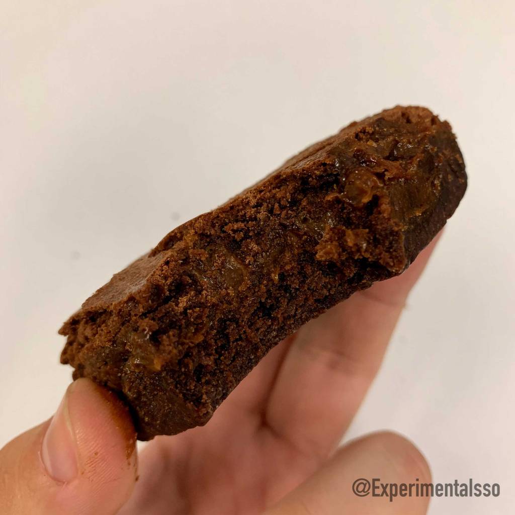 Encontramos esse brownie aqui perto do Shopping Ibirapuera numa lojinha de doces e quando vimos a embalagem dizendo ovomaltine não conseguimos deixar passar! 😁 Pra começar o brownie é muito gostoso, ele tem um recheio extra na parte superior embaixo da “casquinha” como vocês podem ver nas fotos! Além do recheio chamativo, o resto do brownie estava bem macio, parecia ter sido feito a pouquinho tempo. Quanto ao sabor, não sei dizer por que não lembrou tanto Ovomaltine, se é por que não era crocante ou por que o gostinho do malte se perdeu no meio de todo açúcar do Brownie, mas se considerarmos como um brownie de chocolate ele com certeza é um dos melhores que você pode encontrar por aí! 👌