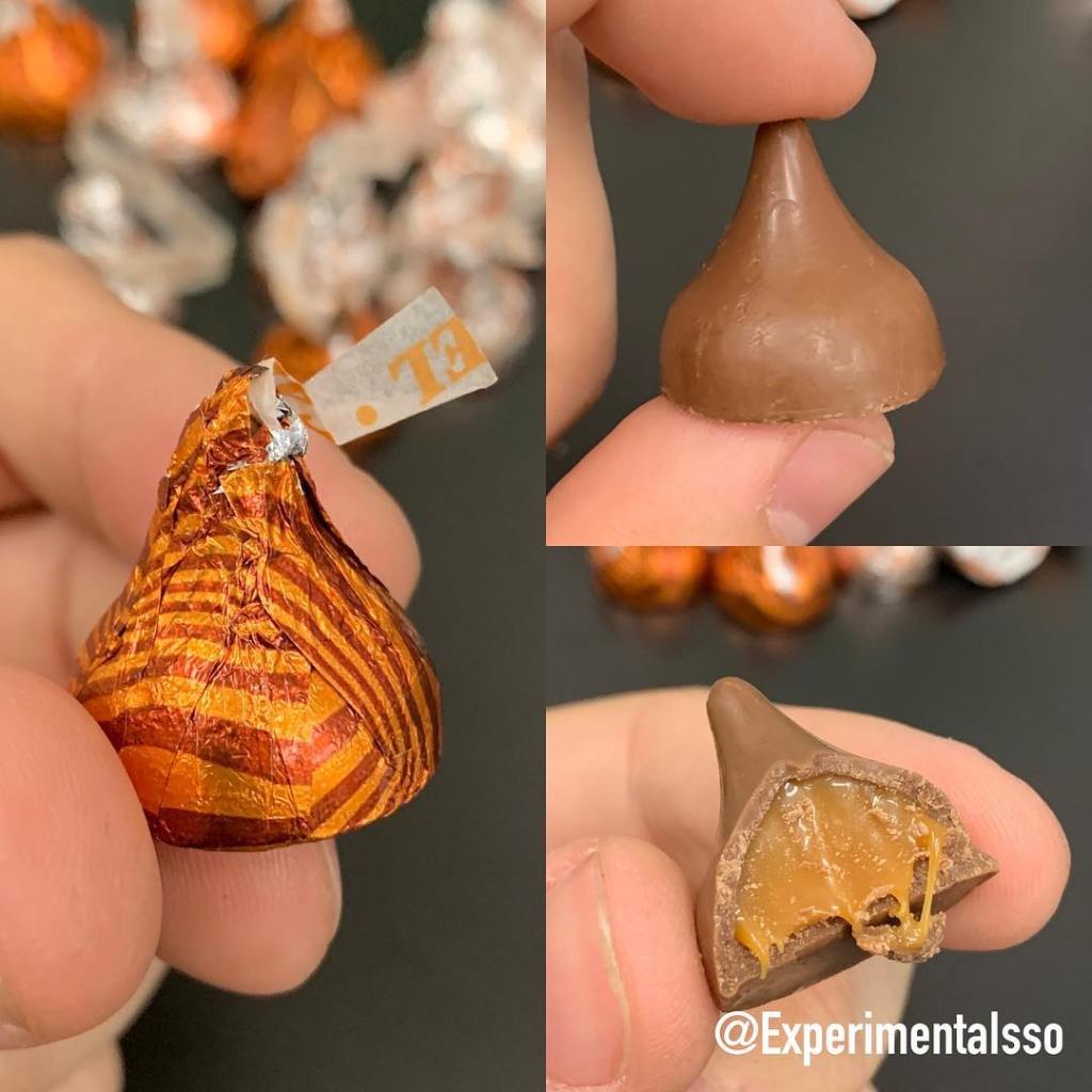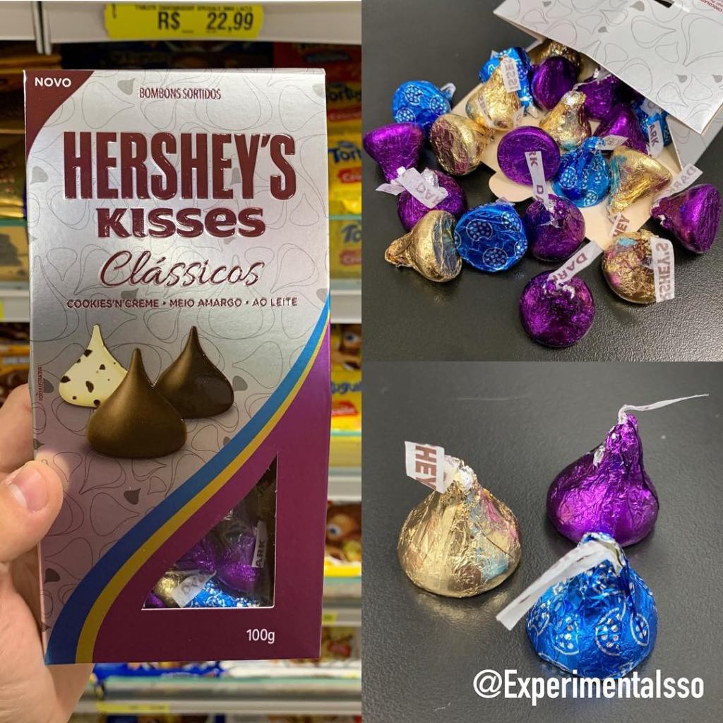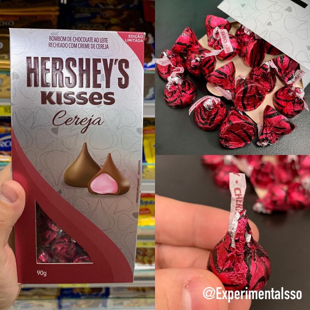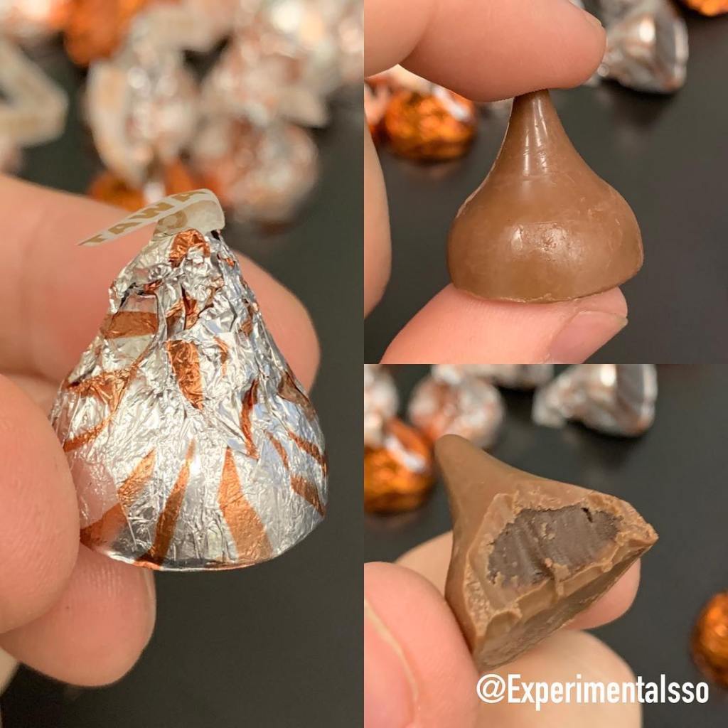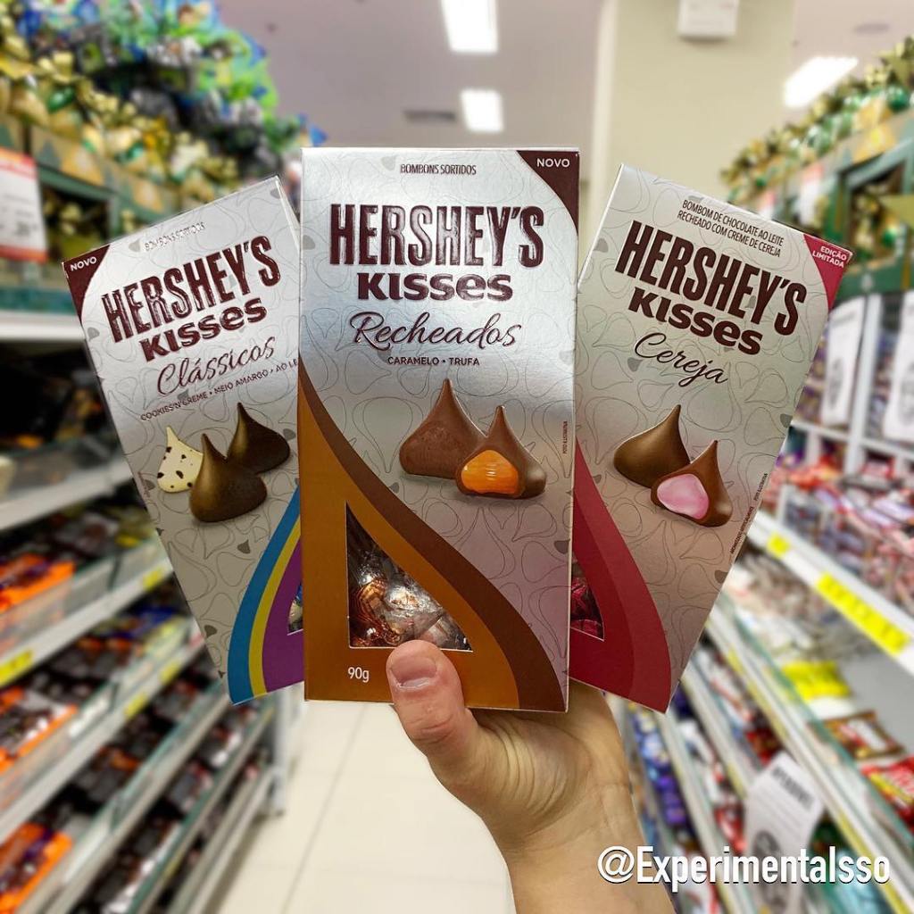Além da volta dos clássicos Kisses de Chocolate ao Leite, Dark e Cookies’n Cream a Hershey’s acaba de lançar os Kisses Recheados! Uma caixinha vem com Kisses de chocolate ao leite com recheio de caramelo e Kisses de chocolate ao leite com recheio de Trufa (de chocolate) e outra caixinha vem com Kisses de chocolate ao leite com recheio sabor cereja! Essa de cereja é edição limitada! Meu preferido foi o recheado de caramelo! 😋 É muito gostoso! Mas acho que não tem nada como poder aproveitar os clássicos novamente! É ótimo tê-los de volta! 😁❤️