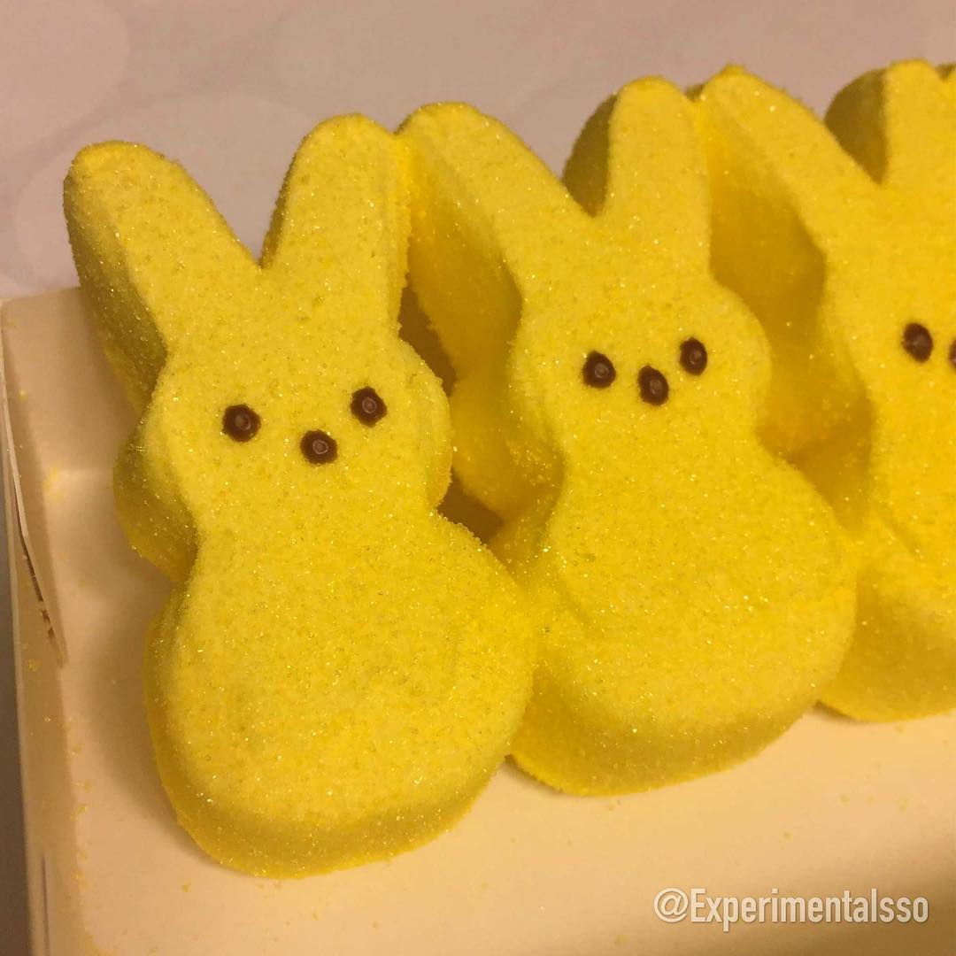 Pra quem não conhece ainda, Peeps é uma marca de marshmallows criada nos Estados Unidos nos anos 50. O diferencial desses marshmallows é que eles sempre tem formatos de animais, geralmente eles são distribuídos em formatos de “pintinhos” mas perto dos feriados como Natal e Páscoa eles fazem algumas edições especiais como essa em formato de coelhinhos! O marshmallow é muito gostoso, fofinho e com sabor de baunilha, por fora ele tem essa camada decorativa de açúcar que acaba criando uma casquinha bem interessante também! Vale a pena experimentar se você tiver a oportunidade! .