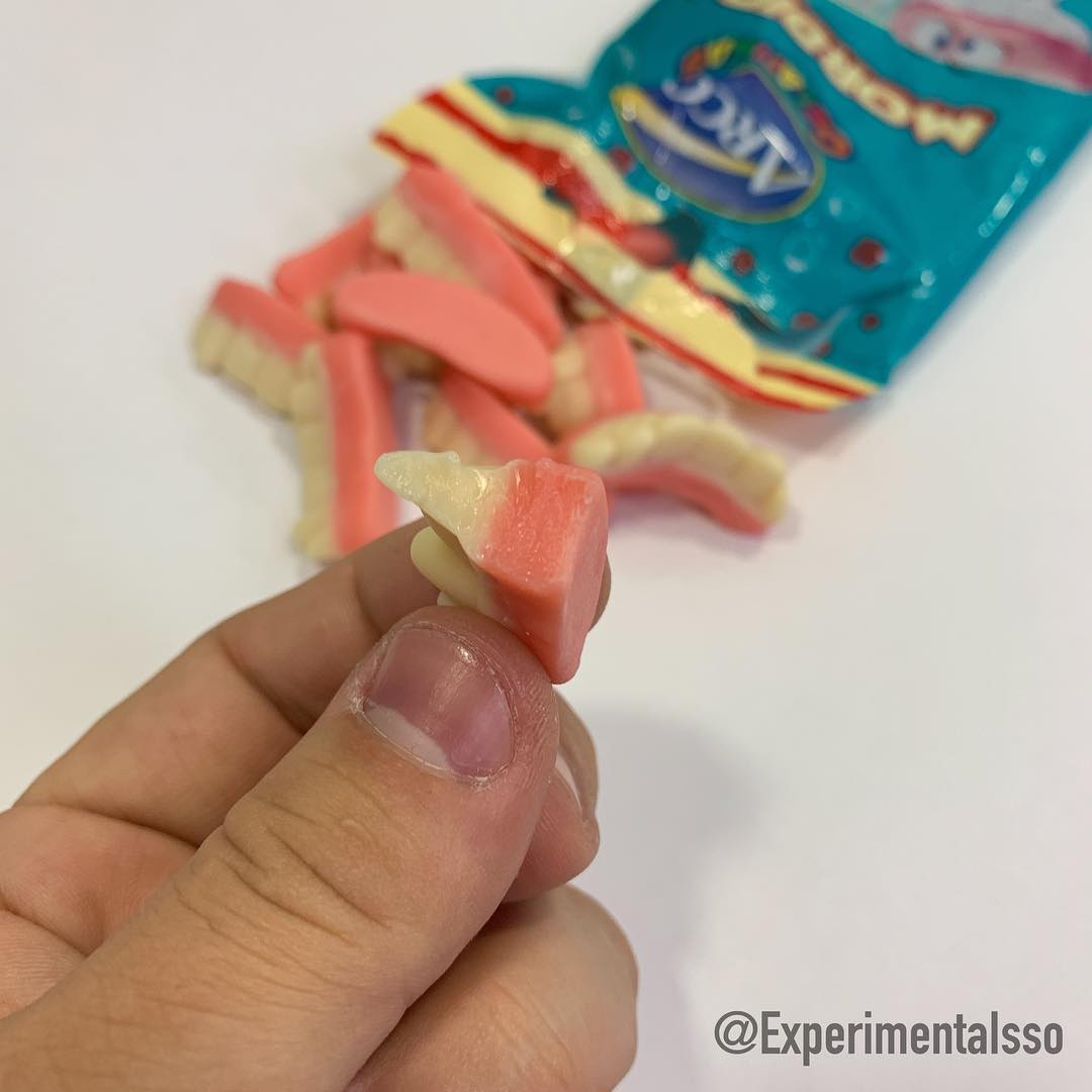 Acompanhando o lançamento que mostramos ontem, a Arcor também lançou essa balinha de gelatina chamada “Mordida”! Não podemos negar que já vimos muitas balas de gelatina com esse formato por aí, mas essa aqui fica entre as 3 melhores que já experimentamos! Ela não é dura como algumas que já vimos, ela é macia e com a textura certa. O sabor de morango e iogurte também fazem a bala ser doce na medida certa! Vale a pena experimentar essa aqui! E pode proveitar e pegar um pacotinho daquela bala Tortuguita que mostramos ontem! 😁 Vai ser um combo perfeito!👍