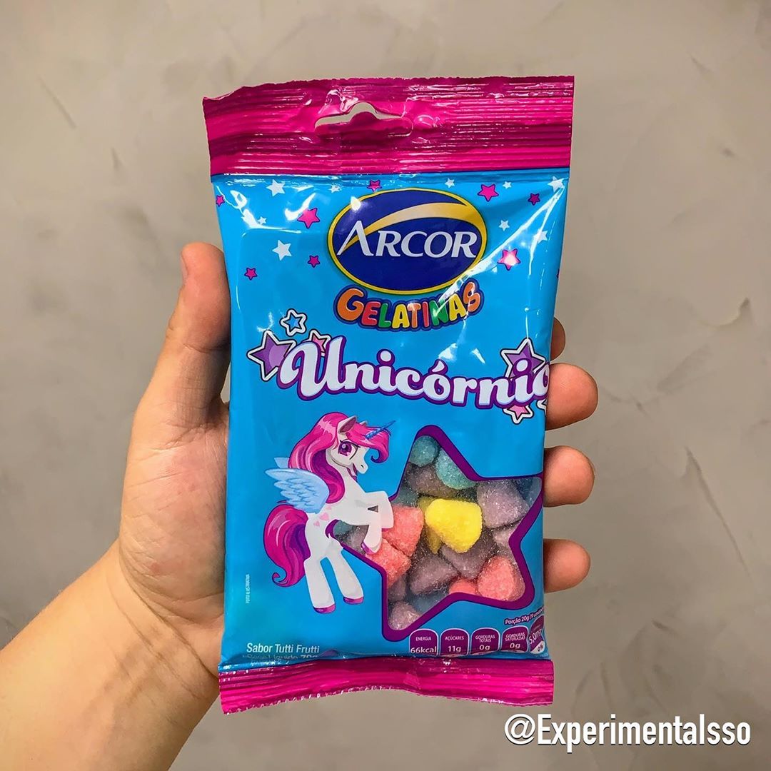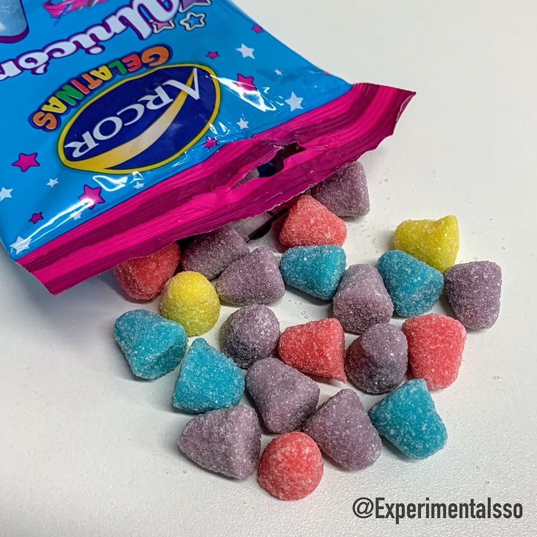 Novas balinhas de gelatina da Arcor! Apesar de ter 4 cores diferentes, o sabor das balas é Tutti-Frutti! A textura lembra bastante balas de “goma” se é que vocês me entendem…Pra quem gosta de bala de gelatina “de verdade” recomendo as outras balinhas da Arcor que acabaram de sair também como a “Mordida” ou a “Tortuguitas”! Confiram nossos outros posts pra saber mais sobre elas! 😉