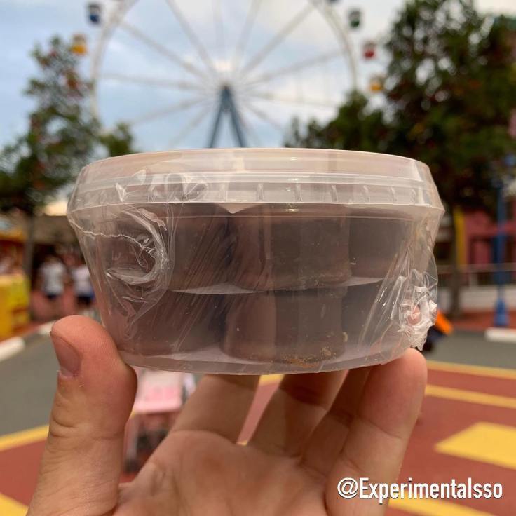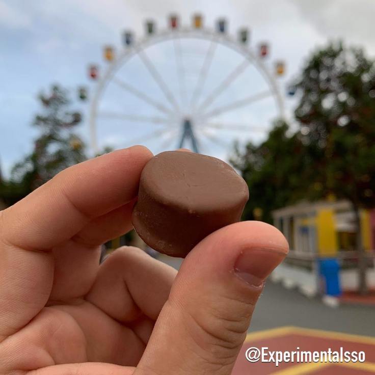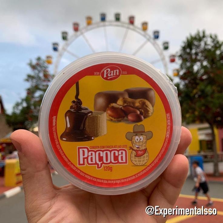 Incrivelmente a primeira paçoca com chocolate que comi foi há 20 anos atrás, quando ainda era criança e ainda morava no Rio Grande do Sul, em um botequim numa cidadezinha do interior. O lugar não era nada atraente, mas quando passei por ele avistei essa “iguaria” numa bandeja em cima do balcão e me chamou muito a atenção! Peguei uma moedinha de 50 centavos que tinha no bolso, entrei no boteco e comprei uma paçoca coberta com chocolate para experimentar. 😍 Foi amor à primeira mordida! Era uma delícia! Juntei mais umas moedinhas e comprei outra pra mais tarde! 😋 O problema é que passaram-se quase duas décadas até encontrar novamente algum lugar vendendo essa maravilha! Pra saciar minha vontade tive que me virar e aprender a fazer em casa mesmo! 😅 Mas felizmente na atualidade que vivemos você pode ir no mercado, na padaria ou até mesmo no parque de diversões e comprar um POTE cheio de paçoquinhas cobertas com chocolate! 😍❤️ Essa aqui por exemplo nós compramos na lojinha da Pan dentro do Hopi Hari! É muuuuito gostosa! E vem 12!😱Suficiente pra você dividir com os amigos! Mas só se eles insistirem muito…😂
