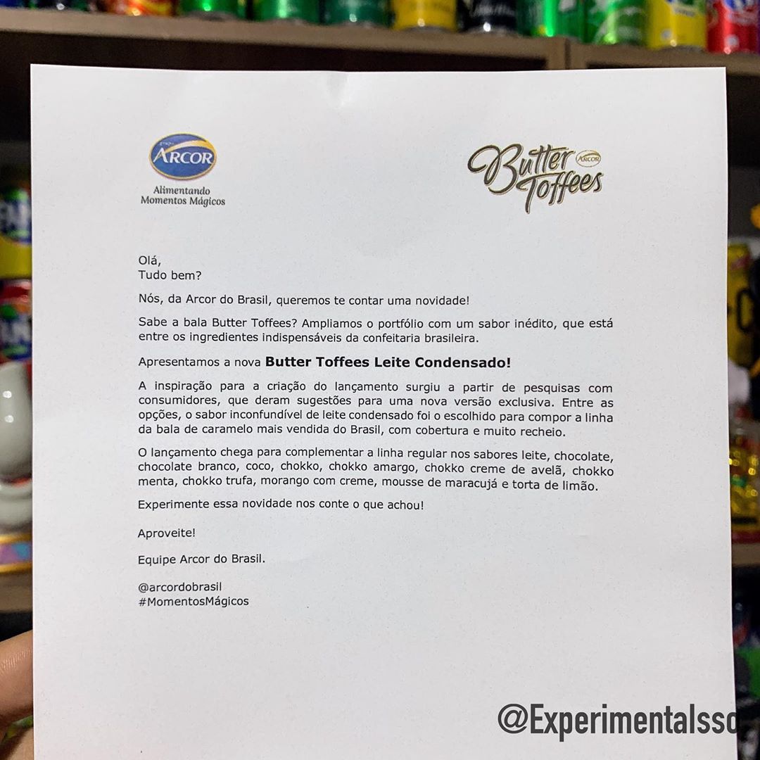🇧🇷Nova Butter Toffes de Leite condensado! 😋 Acabou de chegar por aqui esse presentinho de Arcor! É a nova Butter Toffes sabor Leite Condensado! 😍 Butter Toffes já era gostosa…mas esse novo sabor está demais! O recheio parece realmente leite condensado! 😋
