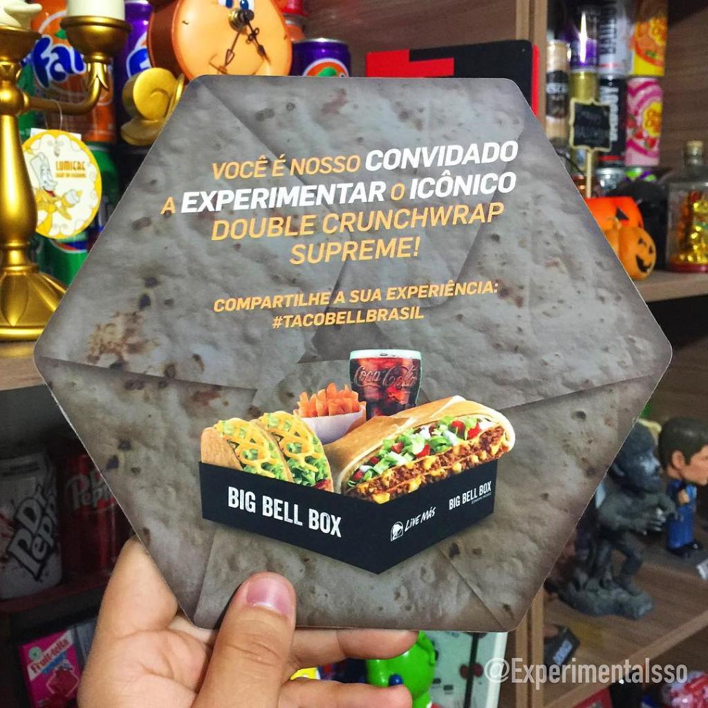 Recebemos um convite do Taco Bell para experimentar a edição limitada da Crunchwarp Double! 😍 Já achamos incrível por que o convite era no formato e no tamanho da Crunchwarp! 😅 Fizemos até uma comparação a hora pra ver se estava na medida certa! 😆 De qualquer forma, essa versão com dobro de recheio ficou incrível! Pra quem não conhece ainda a Crunchwrap é uma tortilha fechada num formato de 6 pontas com recheio de carne (ou frango, ou feijão), uma tortilha crocante no meio e muito queijo nacho e sour cream. Ah e tem alface e tomate em cubos também! É muita coisa dentro! 😂 Pra você que ama Taco Bell como a gente e quer uma opção diferente do burrito, essa é a escolha perfeita! Vale a pena experimentar! 👍 Informação extra: já inaugurou a nova loja do @tacobellbrasil no Shopping Ibirapuera!😉