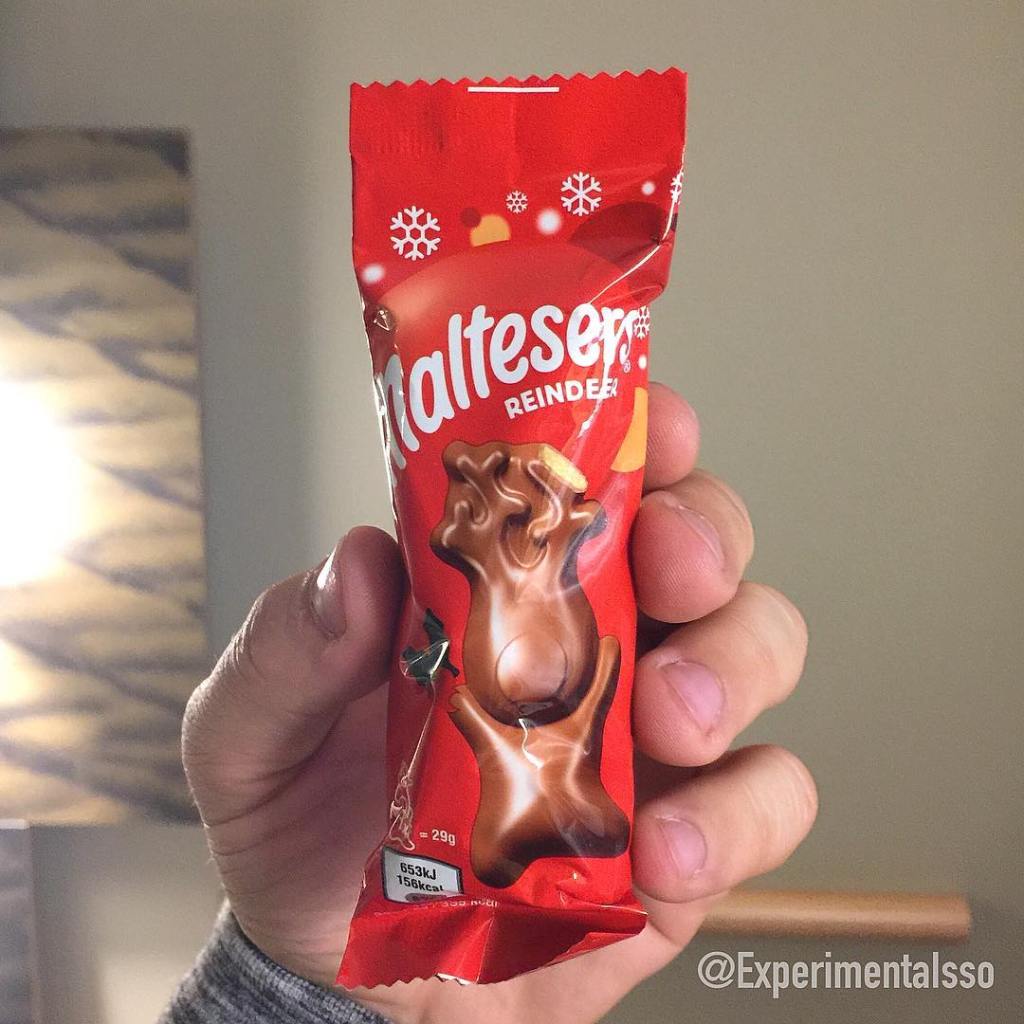 Aqui no Reino Unido Maltesers faz sucesso! É mais fácil achar um derivado do que as bolinhas originais! 😂 E essa ai é apenas uma das versões feitas para comemorar o natal! A proposta lembra o Snowman da Cadbury que postamos agora pouco, é uma casquinha fina de chocolate e no caso deste temum recheio com crocantes sabor malte, como o chocolate original! É uma delícia! Para quem gosta de Maltesers ou Whoppers (aqueles da Hershey’s) é nota 10!