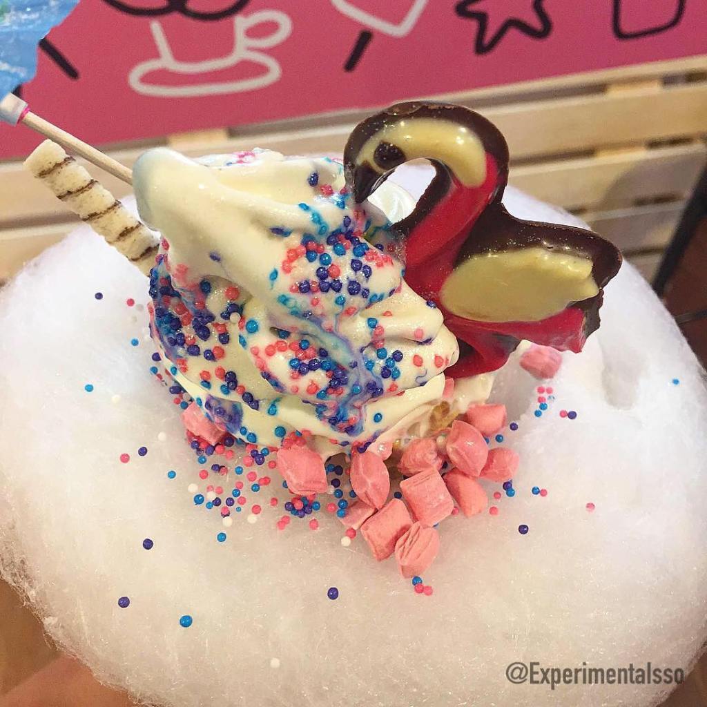 🍦☁️🌈 Sorvete + Algodão Doce! 😍😍😍 Ontem fomos na nova loja da @donanuvemoficial no Shopping Morumbi experimentar o sorvete temático de Flamingo! É muito gostoso! O sorvete que pedimos é de baunilha, com toppings de confeitos coloridos, balinhas de coco sabor tutti frutti e glitter comestível! Ah tambem tem o “biju” e o guarda-chuva também! O astro principal é o flamingo de chocolate ao leite com essa cobertura colorida! Ficou muito legal! Além dos novos sabores e temas, essa nova franquia traz vários canários e locais específicos para você tirar a sua foto perfeita do Sorvete com Nuvem! Ah, e também tem uma linha de produtos, cadernos, camisetas, chocolates, inspirados em seus próprios sorvetes! Nota: 8/10! Preço R$18,00! Franquia Dona Nuvem do Shopping Morumbi – SP