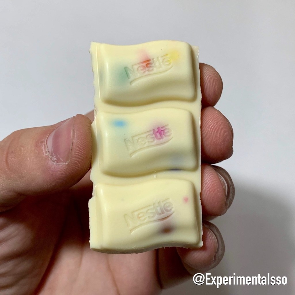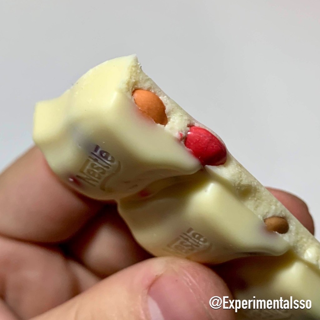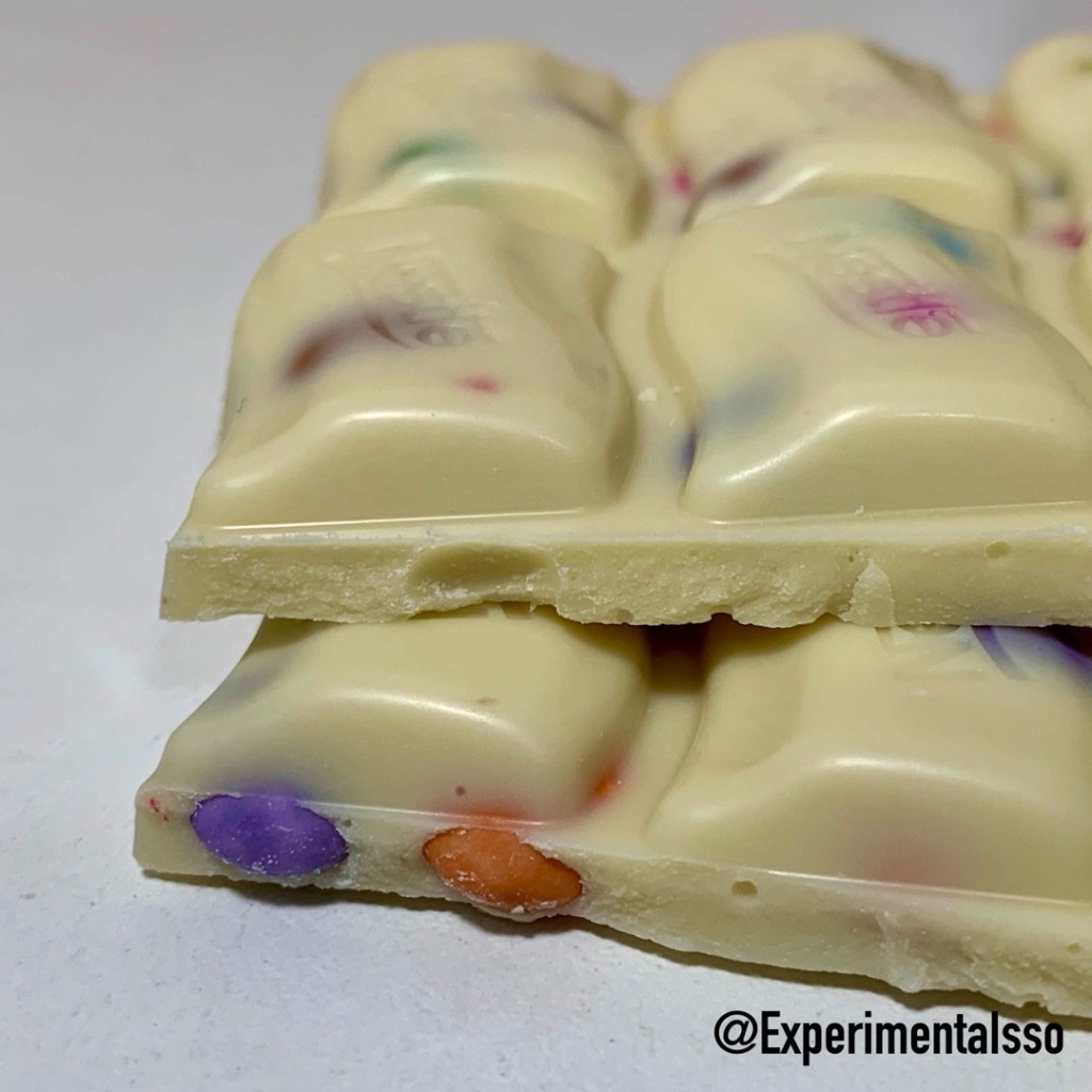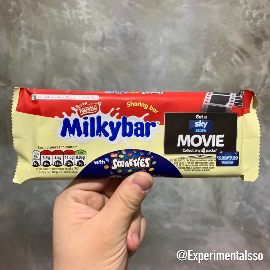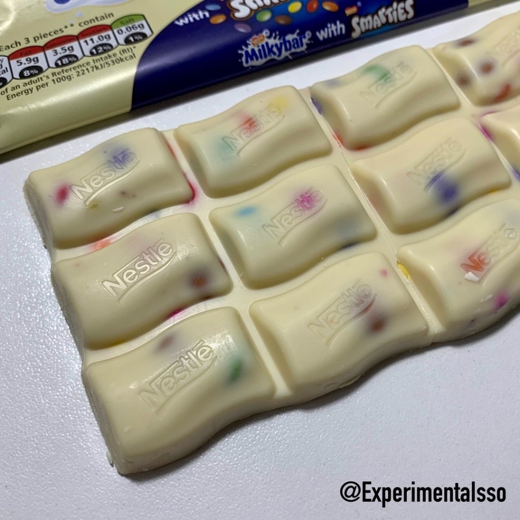 Milkybar já foi uma marca existente no Brasil, mas o chocolate era completamente diferente…foi o substituto do Lollo por um tempo. Mas em vários outros países Milkybar é o chocolate branco da Nestlé! Essa barra aqui é bem especial porque também tem os confeitos Smarties da Nestlé! É muito gostoso! 😋😋😋⠀
