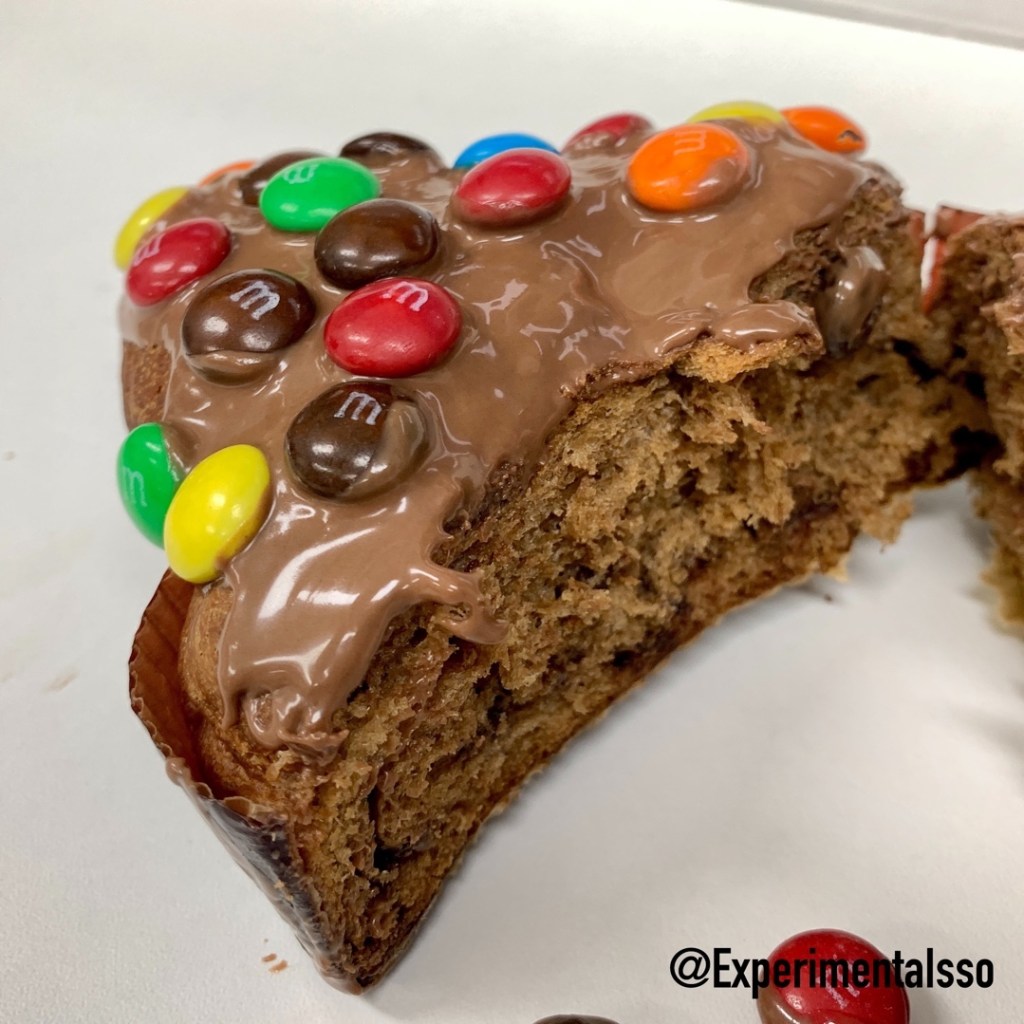 A Páscoa já está chegando e alguns produtos exclusivos dessa época já começaram a aparecer nos mercados. Essa mini Colomba de M&M’s da Bauducco tem um conceito extremamente parecido com o mini Panetone de M&M’s que apareceu na época do Natal. Dentro da caixa vem uma Colomba com gotas de chocolate, um pacote de M&M’s de chocolate ao leite e um pacote de “cobertura” de chocolate com avelã (tipo Nutella…)! A proposta aqui é você mesmo montar e decorar a sua “Chocolomba” com a cobertura e os confeitos. O resultado ficou muito parecido com o Panetone que experimentamos no Natal! É bem gostoso e a cobertura é bem saborosa e cremosa. ⠀ .⠀ Nota: 8/10⠀ Local de compra: Cantinho Doce Preço: R$8,99⠀ .⠀ #chocolate#pascoa#novidades@bauducco@mmsbrasil@cantinhodocemoema
