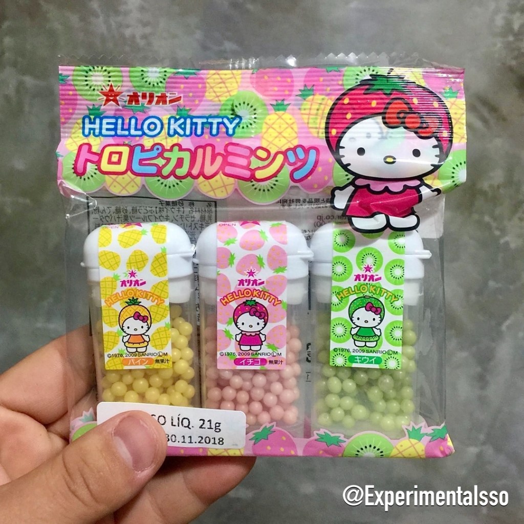 Mais um achadinho da Liberdade. Essas balinhas são basicamente bolinhas de Açúcar nos sabores abacaxi, morango e kiwi! Não é nada de mais, mas é “gostosinho”. E se você curte Hello Kitty já vai curtir só pela embalagem! . Nota: 7/10 Preço: R$5,00 Local de compra: Marukai (Bairro Liberdade) . #hellokitty#doces