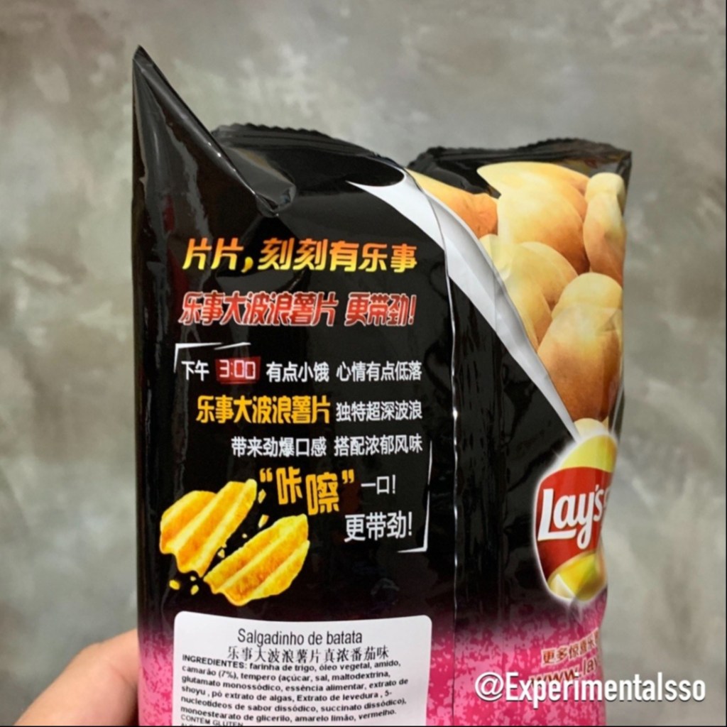Hoje é dia de ir na Liberdade. É por lá que encontramos uma grande parte das coisas “diferentes” que postamos aqui no Experimenta Isso. Essa Lays’s por exemplo, tem sabor de tomate e um formato ondulado que lembra muito Ruffles! Ela é importada da China e mesmo no bairro Liberdade, você só encontra em algumas lojas. Estamos deixando aqui embaixo da legenda, a localização do mercado onde encontramos, caso você queira se aventurar e experimentar. Ela é gostosa, mas você tem que curtir bastante o sabor de sopa de tomate e ketchup, porque é basicamente isso que nós lembrou!⠀ .⠀ Nota: 7/10⠀ Preço: R$8,00⠀ Local de compra: Jia He (R. da Glória, 118 – Liberdade, São Paulo – SP, 01510-001)⠀