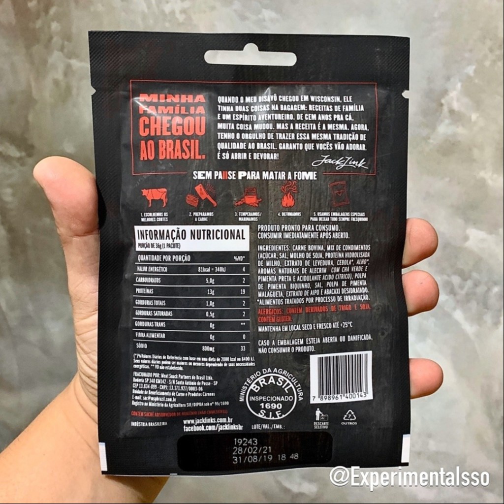 Pra quem não conhece, a Jack Link’s é uma empresa americana que voltou para o Brasil em 2017! Os primeiros lançamentos aqui no BR foram as linguicinhas bovinas, mas o catálogo expandiu nesses 2 últimos anos e o clássico beef jerky americano finalmente chegou! São 3 sabores, original, teriaky e pimenta biquinho! 😋 Se você tiver uma oportunidade, não deixe de experimentar! 😉⠀ .⠀ Nota: 7/10⠀ Preço médio: R$9,00⠀ .⠀ #carne#beef@jacklinksbr@jacklinksjerky