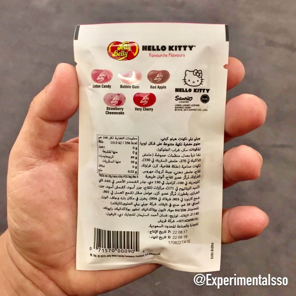 Muitos dos doces da Hello Kitty que já experimentamos eram basicamente balinhas de açúcar muito simples ou sem sabor, mas essas aqui são incríveis! 😋 As balinhas da Jelly Belly já são bem conhecidas pelos sabores diferentes e deliciosos, e essas aqui não são diferentes. Dentro desse pacotinho vem 5 sabores de balinhas: Super Cereja, Chiclete, Cheesecake de Morango, Algodão Doce e Maçã Vermelha! É uma delícia de verdade! Compramos essa aqui em Dubai, mas você pode encontrar aqui no Brasil em algumas lojas e mercados que vendam importados. As vezes também tem no site da Karamell Store. 👍⠀
