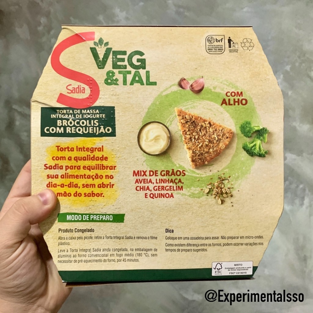 Experimentamos mais um produto da linha Veg&Tal da Sadia, dessa vez foi uma torta vegetariana com massa integral de iogurte e recheio de brócolis com requeijão. Estava uma delícia! A parte de cima é coberta com um mix de grãos (aveia, linhaça, chia, gergelim e quinoa) que deixa a casquinha muito crocante. O único ponto negativo é que a massa ficou um pouco quebradiça, mas pode ser que tenhamos assado demais.⠀