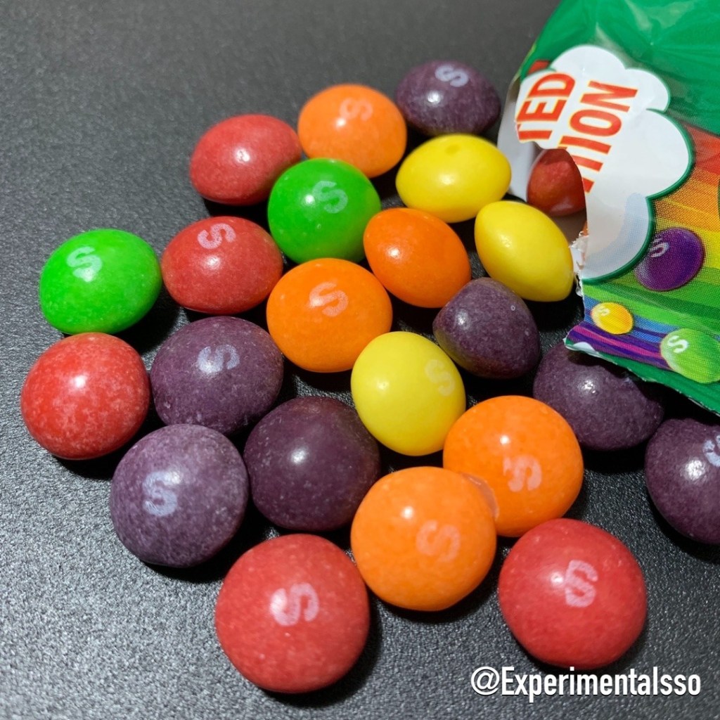 Essa foi uma edição limitada de Skittles que encontramos em Londres. A única coisa que muda nessa edição são os sabores: Laranja, Cereja, Pêssego, Limão e Maçã. São Skittles, então são ótimos…😅 Mas ainda prefiro o Skittles Wild Berry! ❤️⠀