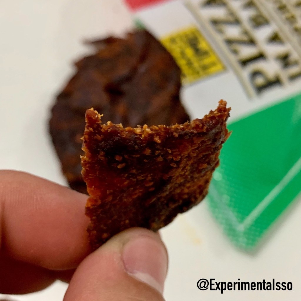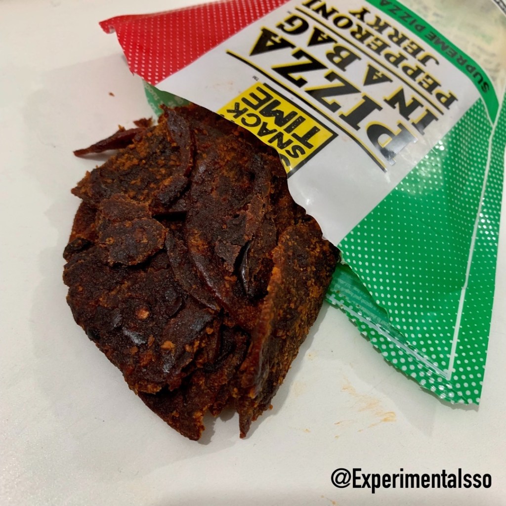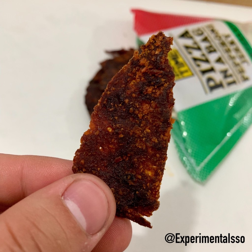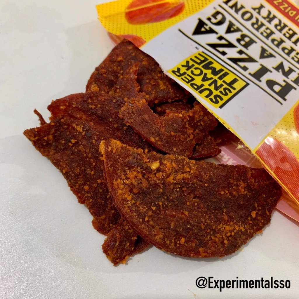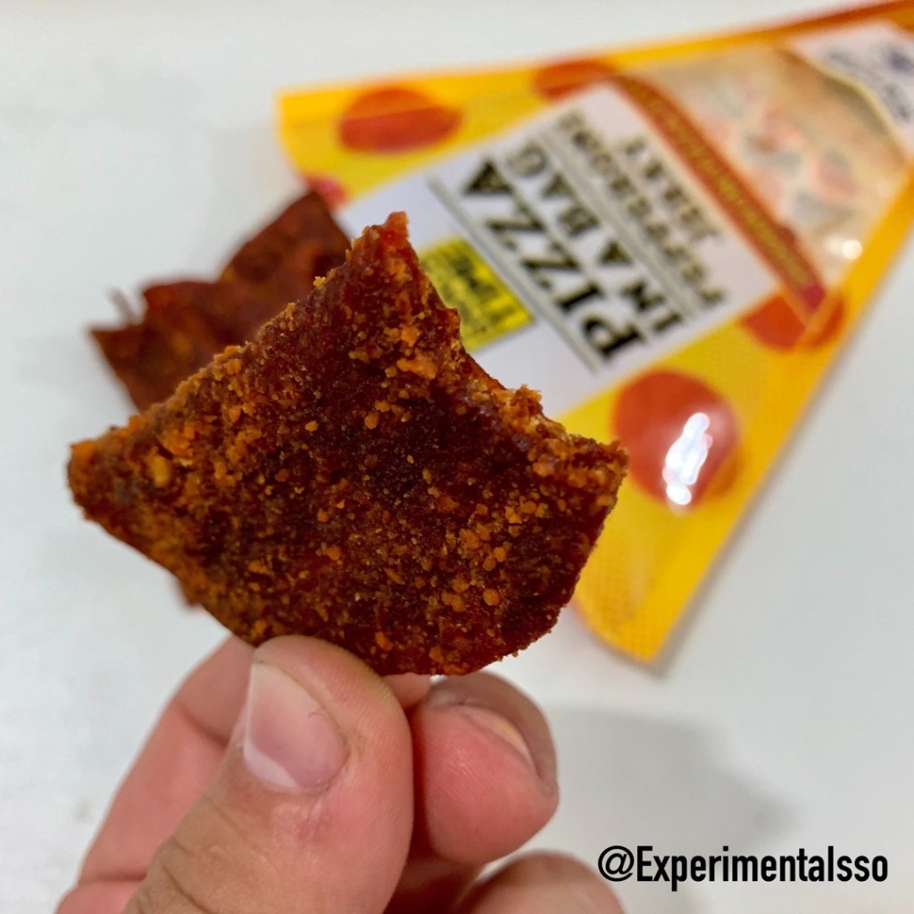Na verdade isso aqui é tipo o Beef Jerky da Jack Link’s que mostramos essa semana, mas ao invés de ser feito com carne bovina é feito com Pepperoni! São dois sabores diferentes: Pepperoni Pizza Style e Supreme Pizza Style….Sinceramente esse snack não chega aos pés da “carne seca” da Jack Link’s…E o cheiro lembra comida pra cachorro…😅⠀