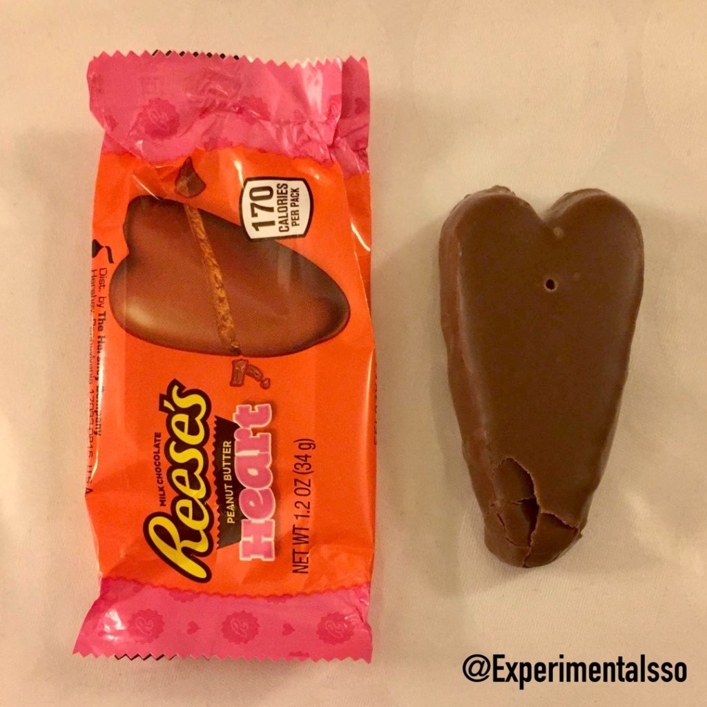 Ano passado mostramos pra vocês a versão gigante do coração de Reese’s feito pro Valentine’s Day, mas essa aqui é a versão MINI! Além do tamanho que equivale a 1/4 da versão “gigante”, essa versão aqui não tem os confeitos de Reese’s (Reese’s Pieces) no meio do recheio e o formato também é um pouco diferente, parece um coração meio “esticado” verticalmente…😅 Mas ainda tem o mesmo sabor de um Reese’s tradicional! 😋⠀