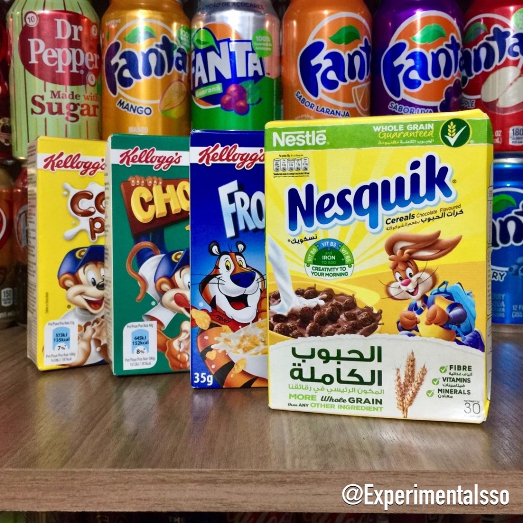 Quando eu estava em Dubai fiz questão de experimentar de tudo um pouco, inclusive os cereais! Pra não desperdiçar procurei as menores embalagens que tinham no mercado. Eles não tem aqueles mini saquinhos que tem no Brasil…O que eles tem são “mini caixinhas”! 😍 Comprei 3 cereais da Kellogg’s e 1 cereal da Nestlé. O cereal “Frosties” da Kellogg’s é a versão “gringa” do nosso “Sucrilhos” e o cereal “Nesquik” é praticamente a mesma coisa do nosso “Nescau Cereal”! 😋 Os outros 2 cereais da Kellogg’s eram de chocolate também. O “Chocos” é parecido com nosso “Sucrilhos de Chocolate”, ele é um pouco menos doce! E o último cereal “Coco Pops” é igual ao nosso querido “Choco Krispis” que deixou de ser fabricado aqui no Brasil no início da década passada! 😔 Todos são muito gostosos, assim como os cerais brasileiros, mas talvez pela nostalgia, o que mais gostei foi o “Coco Pops”! 😋⠀