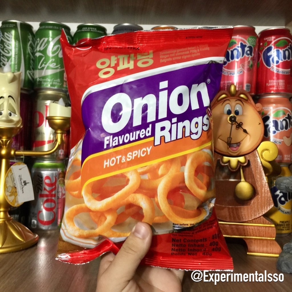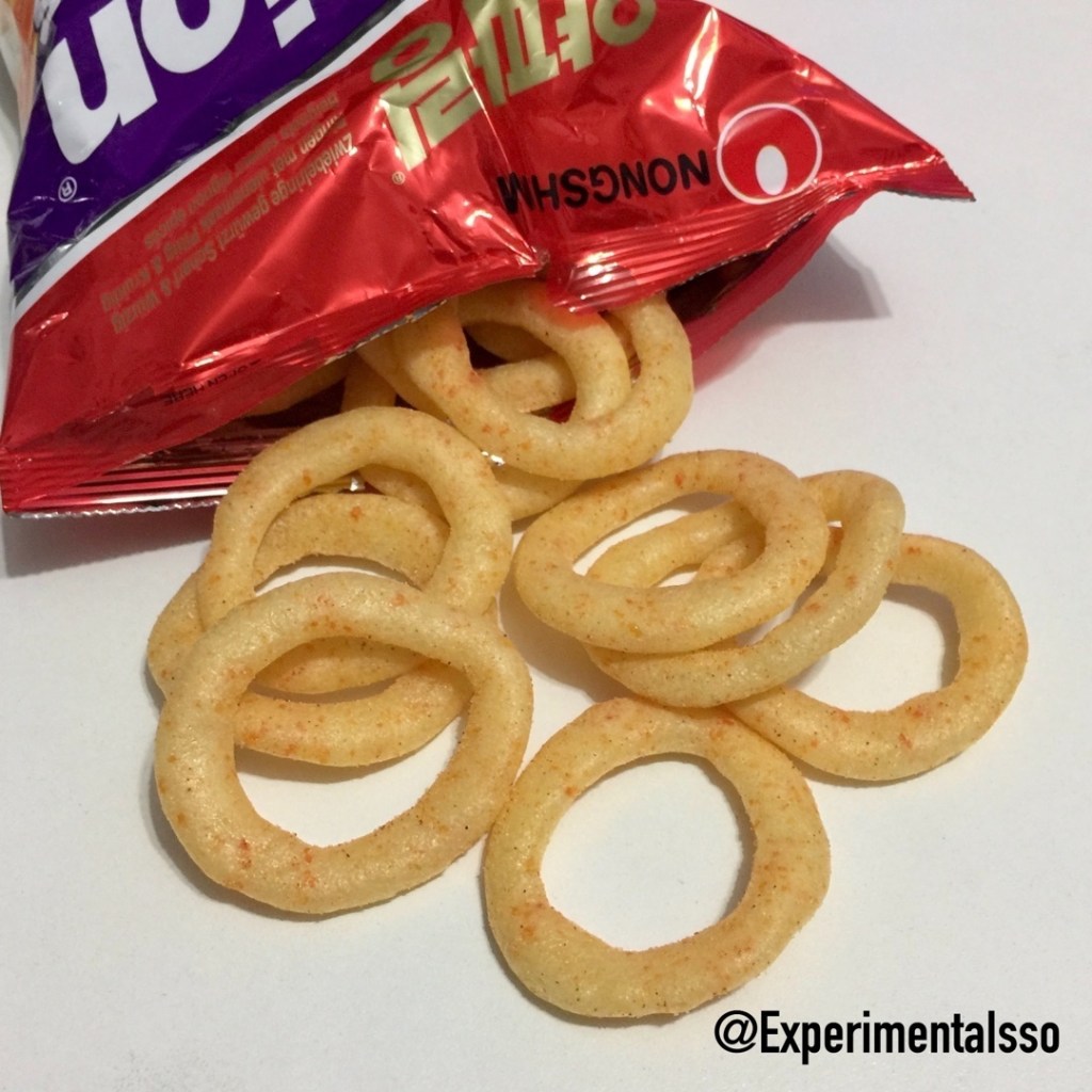 Esse salgadinho é outro clássico coreano presente em quase todos os mercados de importados aqui de SP. Ele é bem diferente do salgadinho “Cebolitos”, não tem aquela textura de “isopor” desse tipo de salgadinho. A textura desses onion rings lembra mais um biscoito de polvilho, com um leve sabor de cebola. O pacote vermelho é igual, porém com um leve toque apimentado. É um salgadinho bem leve na verdade, mesmo na versão apimentada.⠀