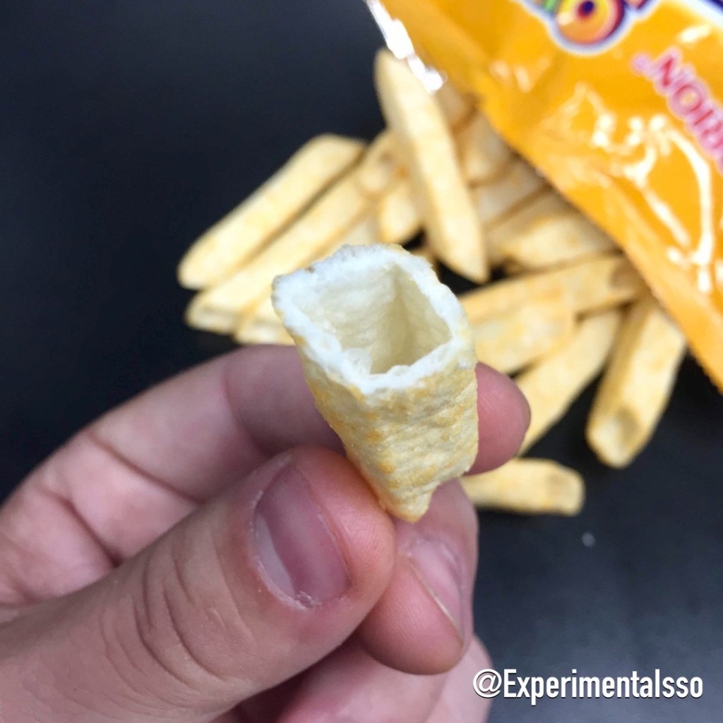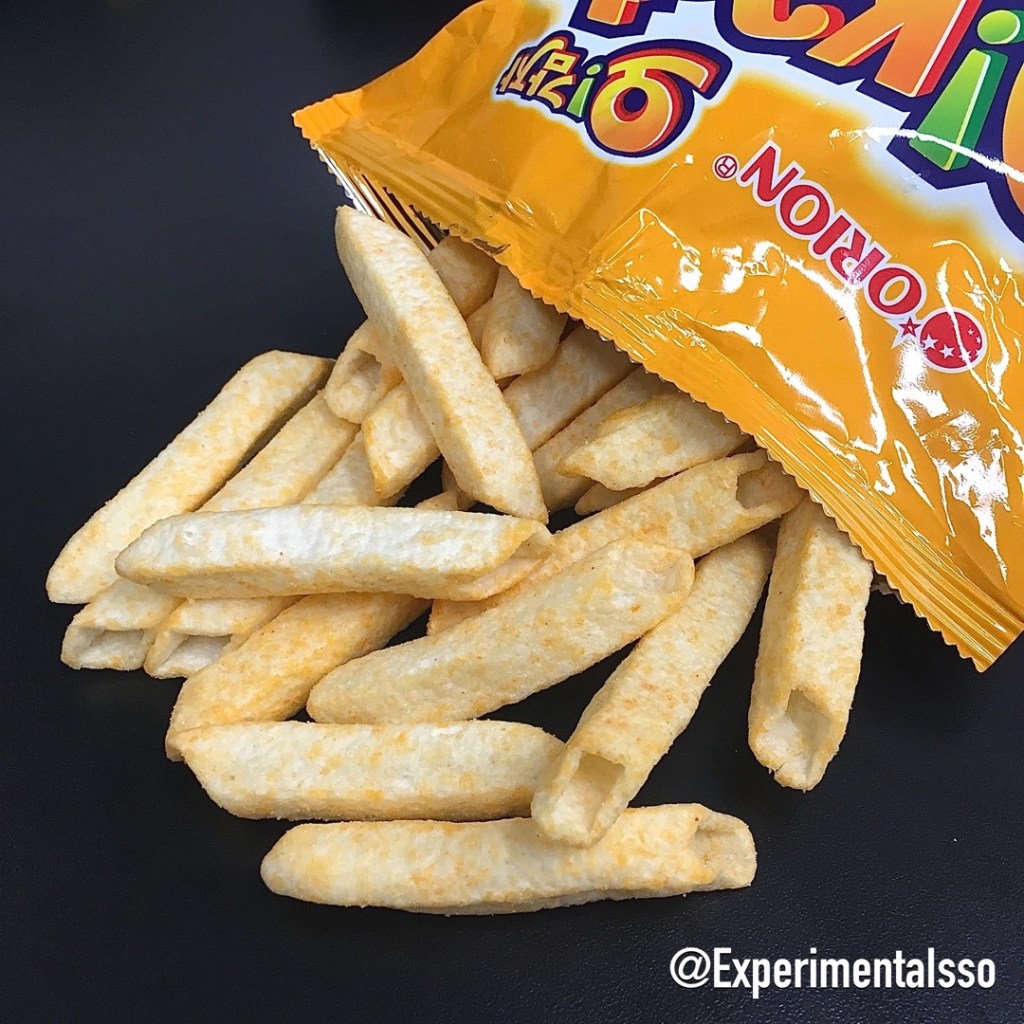 Na liberdade sempre encontramos uma monte de salgadinhos diferentes. Esse aqui é um salgadinho de batata, que até lembra um pouco o formato de batatas fritas (se não fosse pelo “furo” no meio). O salgadinho é super levinho e crocante. Ele não é muito salgado e na verdade faltou um pouquinho de sabor também…⠀