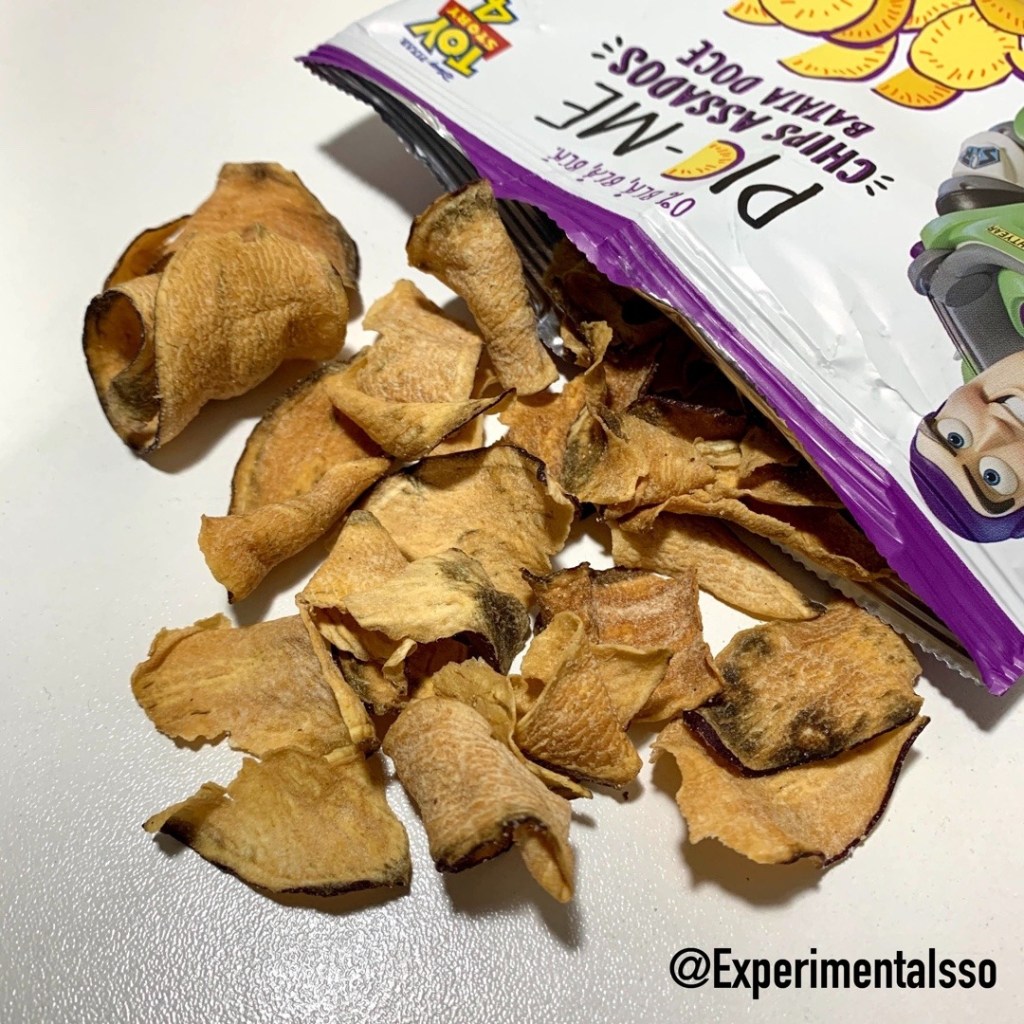 Nunca tinha experimentado essa marca. Não vou mentir que a aparência me deixou um pouco em dúvida, mas o sabor me surpreendeu! 😃Esses chips são muito saborosos e crocantes! Eles são assados, então são bem sequinhos! Adorei também o tamanho da embalagem, é perfeito pra um lanchinho pequeno e rápido! Vale a pena experimentar! A embalagem do Woody são os Chips de Mandioquinha e a embalagem do Buzz são os Chips de Batata Doce! 😊⠀
