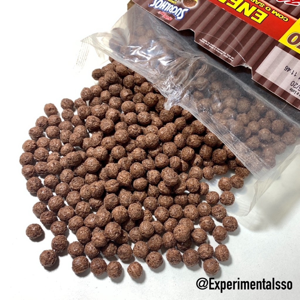 A Kellogg’s acaba de lançar um novo Sucrilhos sabor Brigadeiro! Ele parece muito com o Sucrilhos Power Pops de chocolate. O formato e a aparência são iguais. Talvez esse de brigadeiro seja um pouquinho menor no tamanho, mas o que muda mesmo é o sabor. O novo sabor Brigadeiro remete de leve ao sabor proposto, sendo um pouco menos doce e com um sabor de chocolate bem mais leve. Se você gosta de um cereal bem crocante e pouco doce, você vai gostar desse aqui!
