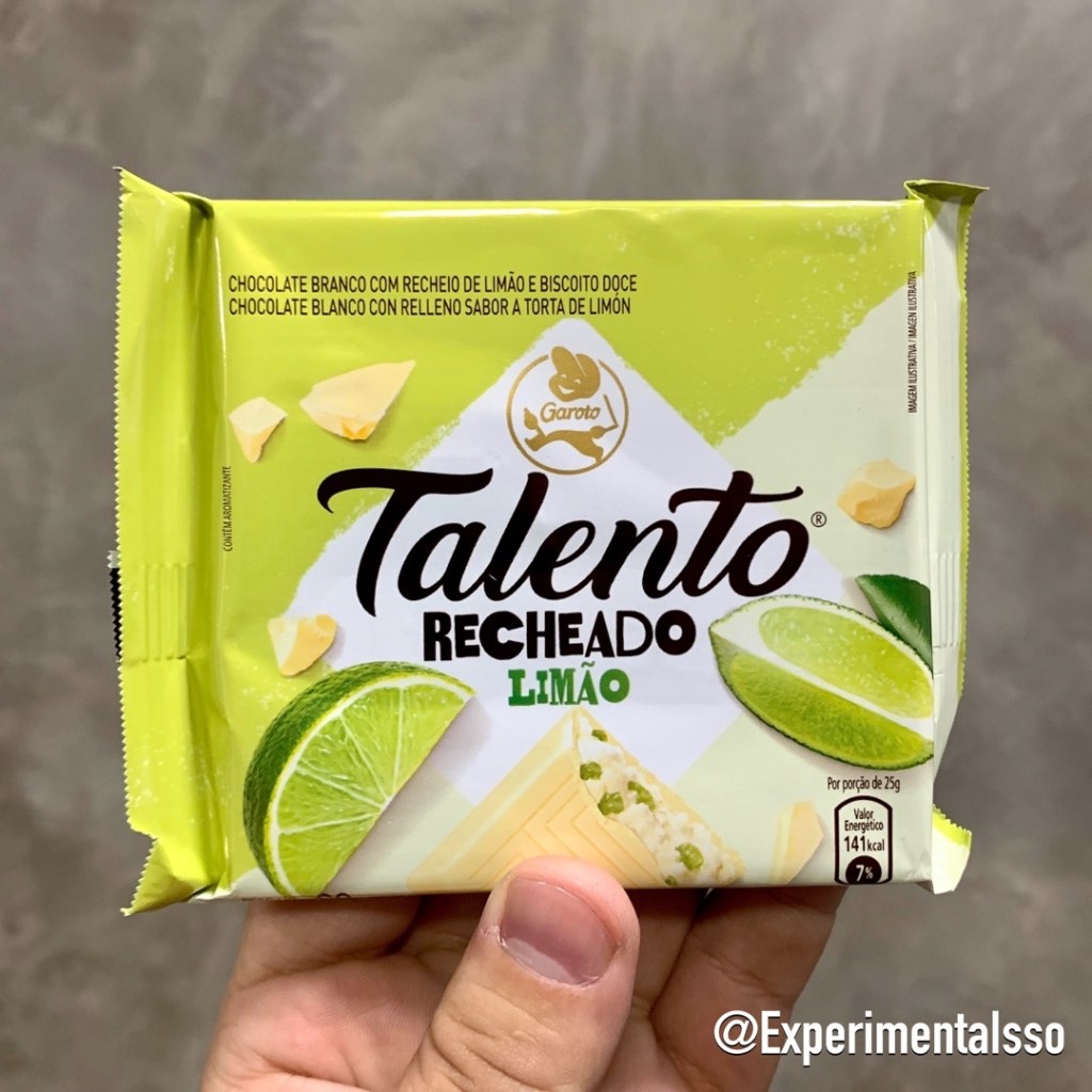 Esse é pra quem ama Talento e limão! Quando você abre a embalagem já da pra sentir o cheiro do limão. A parte de fora é de chocolate branco e o recheio é de limão com um biscoito doce que lembra um pouquinho raspas de limão. O sabor é forte e bem doce. Você que gosta de doces de limão provavelmente vai adorar esse aqui!⠀
