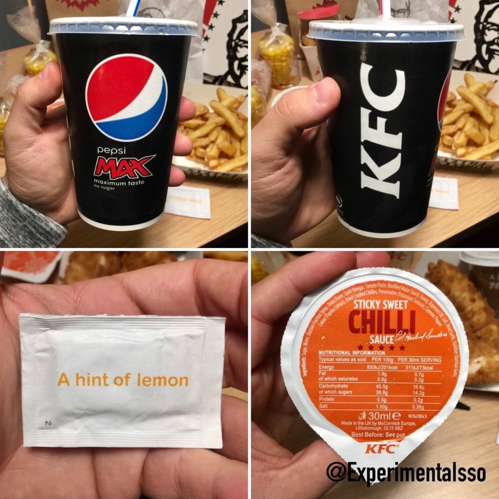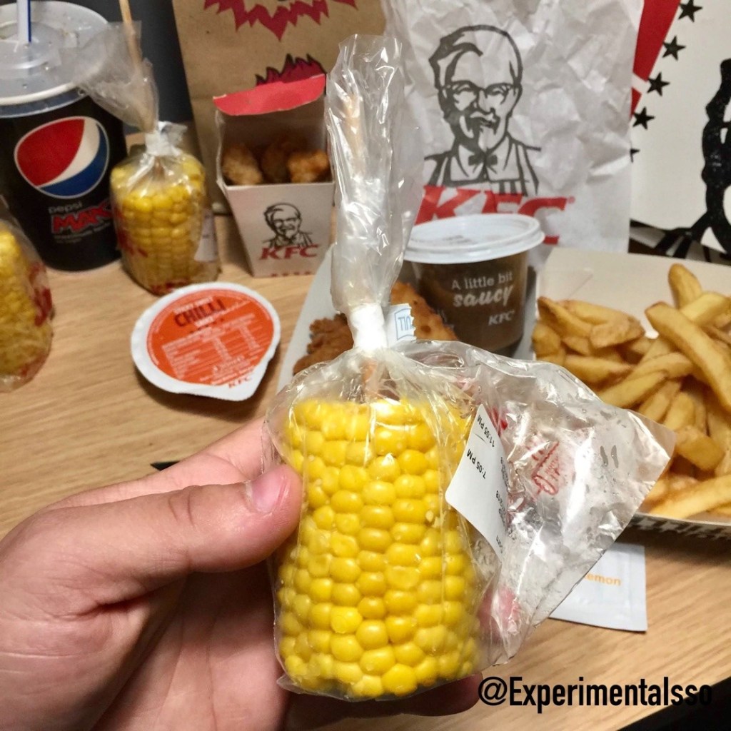 É hora do almoço! E dessa vez resolvemos experimentar o KFC aqui de Londres! Aqui perto do IBIS de Canning Town tem uma rua lotada de pequenos mercados e franquias de Fast Food. A maioria é do tipo que você compra “pra viagem”. Então passei no KFC e peguei algumas coisinhas para experimentarmos no hotel. As tirinhas de frango com a receita “secreta” são a única coisa que achei parecido com o que temos no Brasil, o resto é bem diferente. As fritas daqui são bem mais “rusticas” e não são “fininhas” como as oferecidas no KFC brasileiro. Além disso eles possuem vários produtos que não temos por aí, como essas pequenas espigas de milho no palito e o Chicken Pop Corn, que são pequenas bolinhas de frango compactado e coberto com a “milanesa” básica do KFC. Outra coisa diferente são os molhos, tem muitas opções diferentes por aqui, inclusive o molho tipo Gravy que já é incluído em todo combo. Pra finalizar eles também só oferecem refrigerantes da Pepsico, e como já disse em outro post, não tem Pepsi “normal” nem “zero”, apenas a Pepsi Max…Em geral é tudo MUITO gostoso. Só deixou a desejar nas opções de bebida. Ah…E aquele pacotinho escrito “a hint of lemon” não é nada de comer…É um lencinho úmido pra limpar as mãos após a refeição.