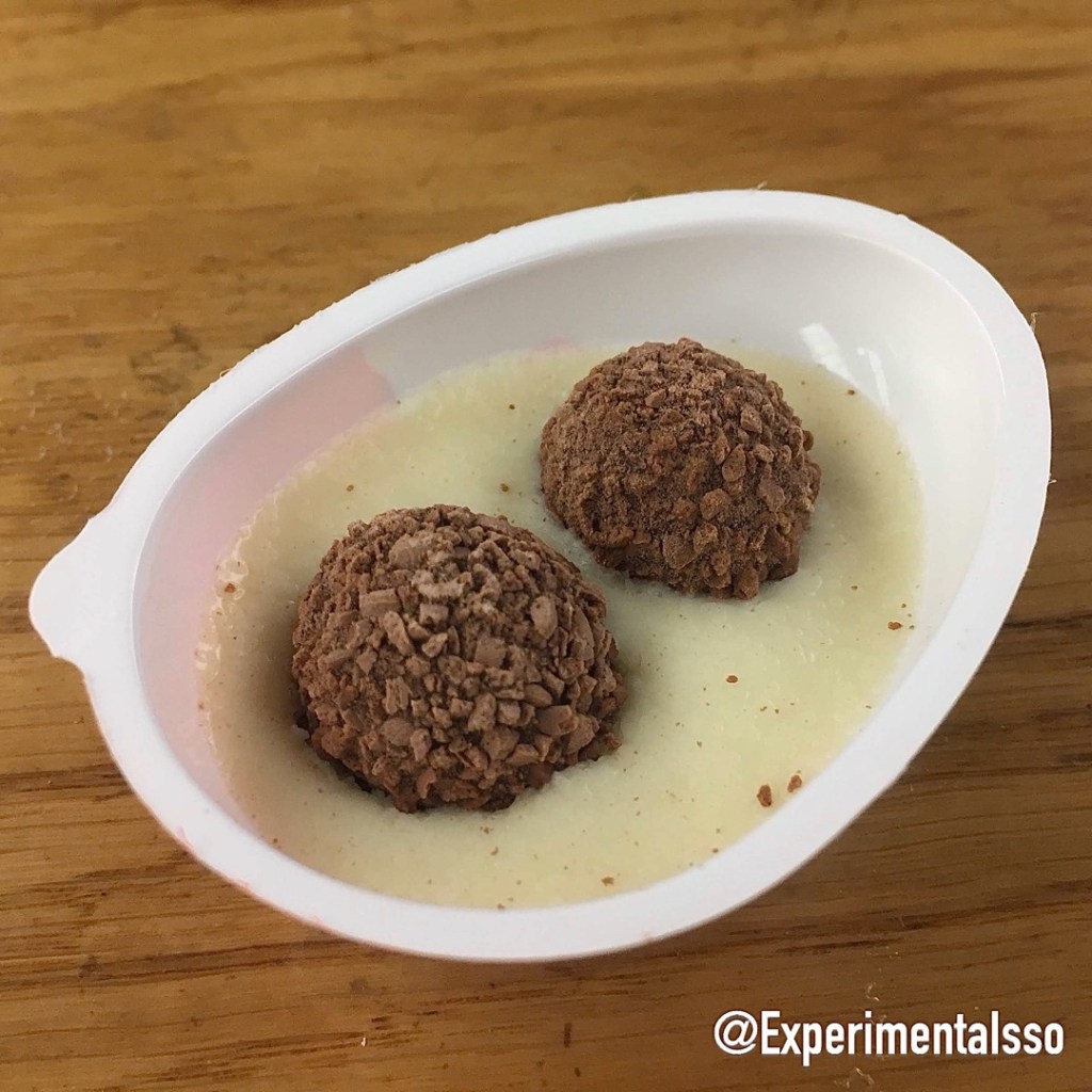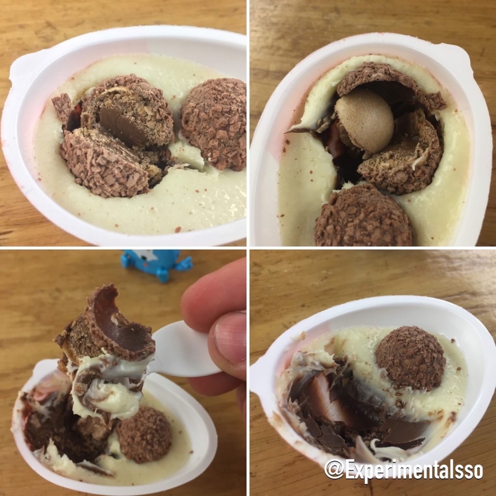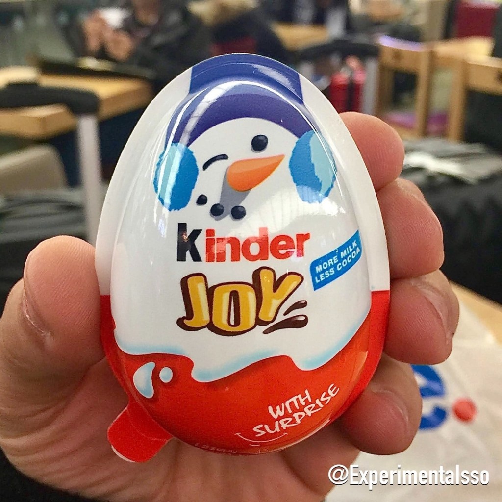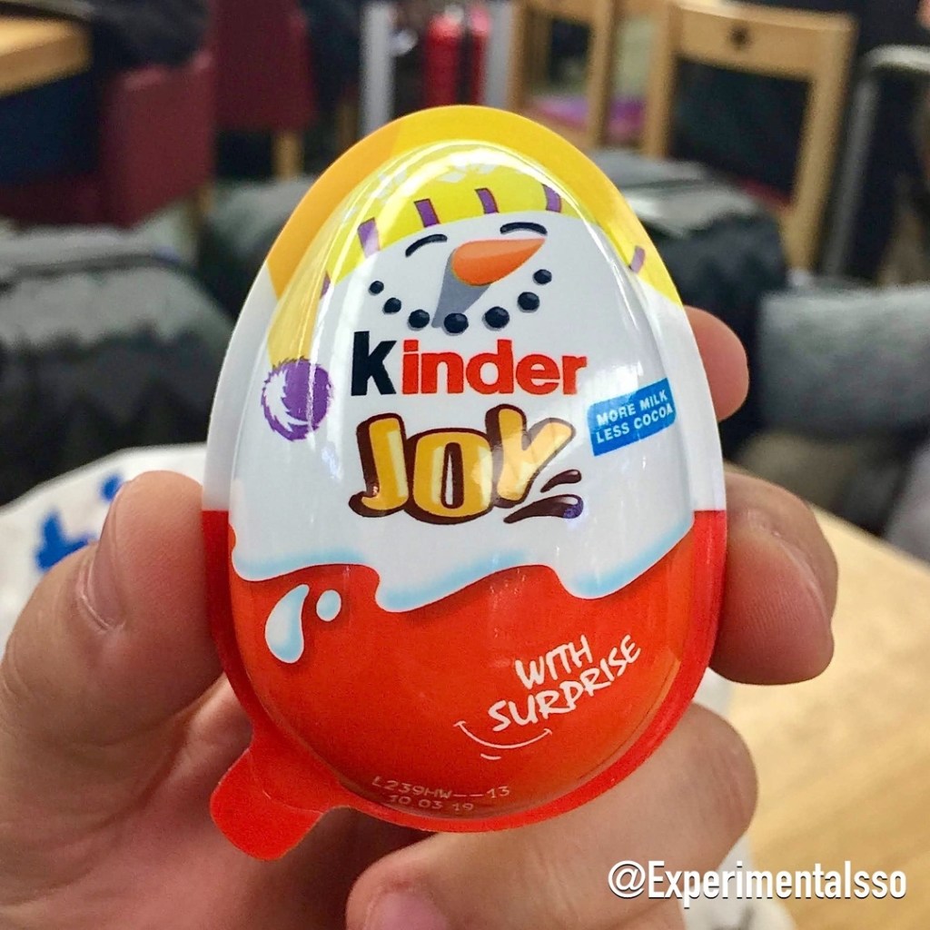 Essa é a edição de inverno do Kinder Joy em Londres! ☺️ Pra quem não sabe o Kinder Joy é bem diferente do Kinder Ovo! Ao invés de ser uma fina casquinha de chocolate ao leite e chocolate branco sabor leite com uma cápsula que vem um “brinquedo” dentro, o Kinder Joy tem uma embalagem que se divide em dois compartimentos, um deles vem o brinquedo e o outro vem o doce cremoso de chocolate ao leite e chocolate branco sabor leite com 2 pequenos bombons crocantes que lembra quase um Ferrero Rocher. Acompanha uma pequena colherzinha de plástico também. O Kinder Joy é vendido no Brasil, mas é bem mais recente que o Kinder Ovo original! Uma curiosidade que a gente gosta de contar, é que nós EUA só é vendido essa versão de Kinder, porque por lá é proibido a venda de qualquer tipo de comida com brinquedo dentro!⠀