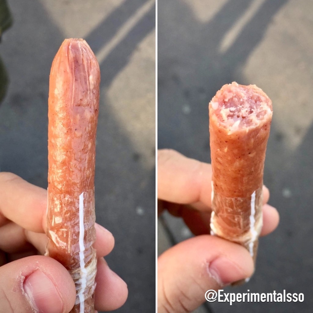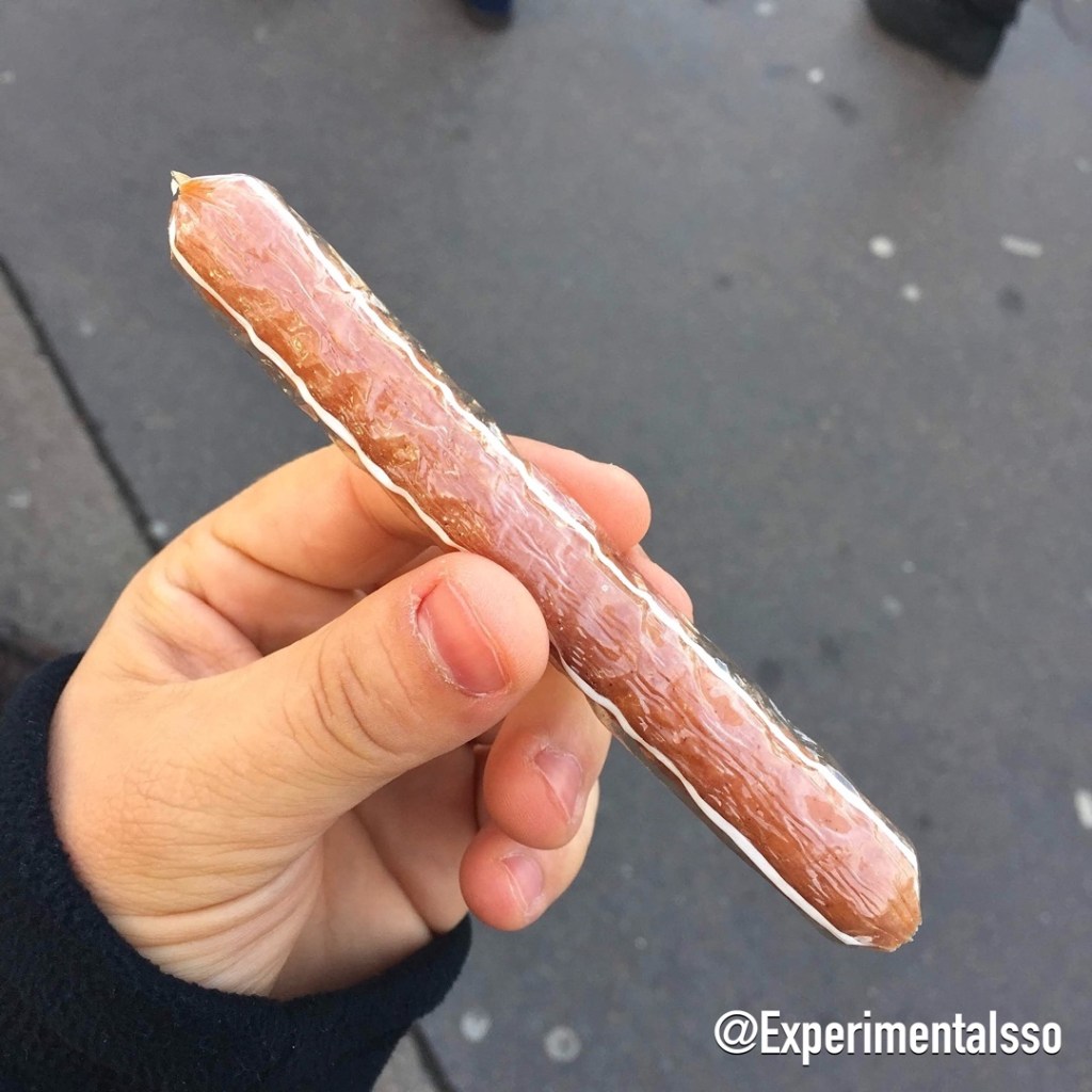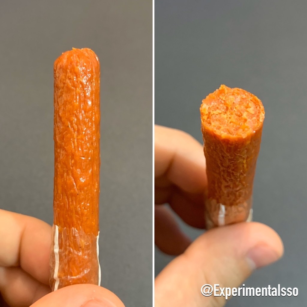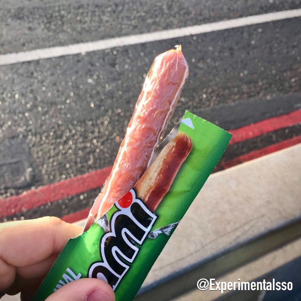 Quando comprei esse lanchinho pensei que ia ser parecido com um Slim Jim que experimentamos nos EUA, mas na verdade isso aqui é basicamente um lanchinho de salame! Ele não tem o melhor aspecto do mundo, mas o sabor até que é bem gostoso. É claro que gostamos ainda mais da versão HOT! É uma opção interessante pra levar na mochila durante a viagem, pelo menos foi o que fizemos…😅⠀