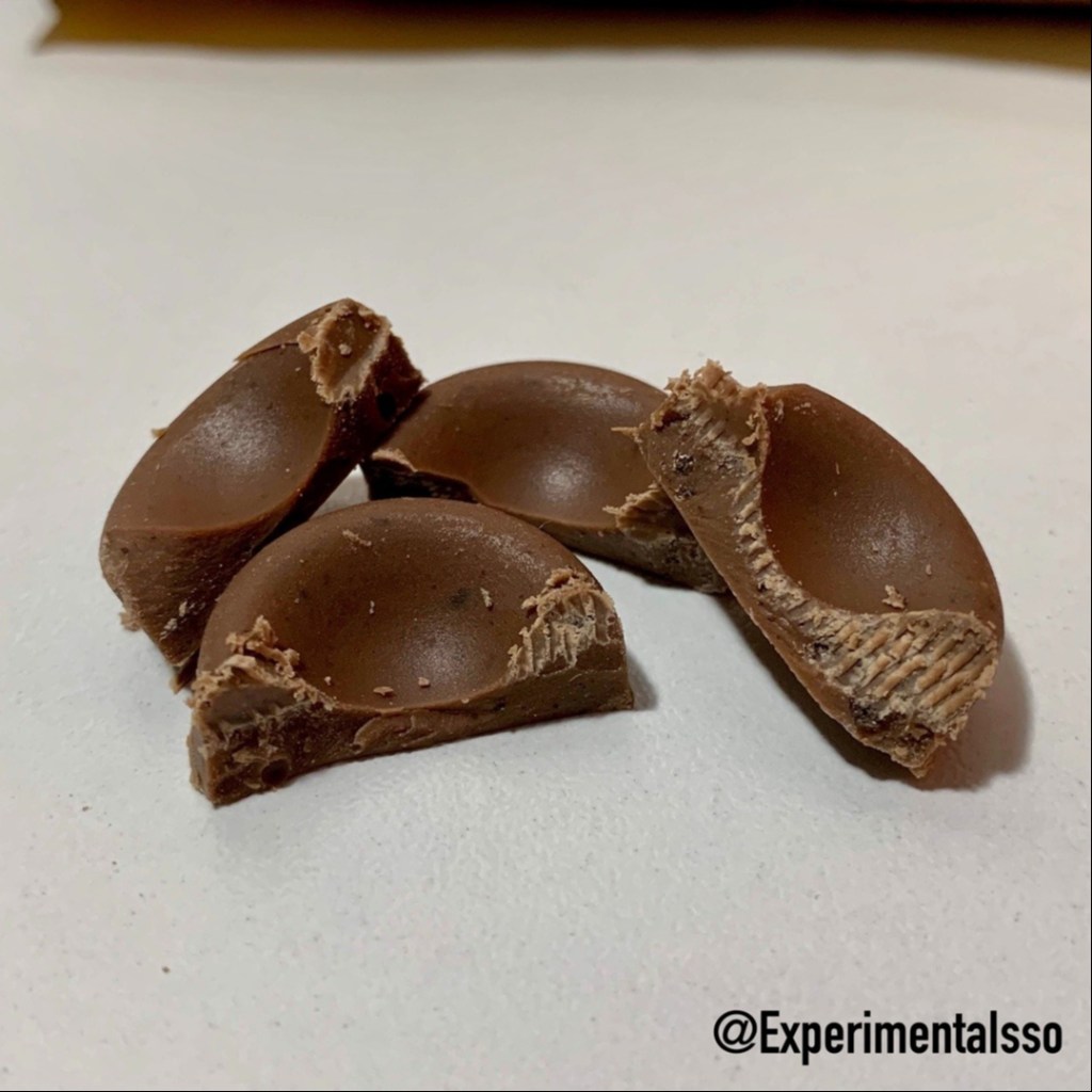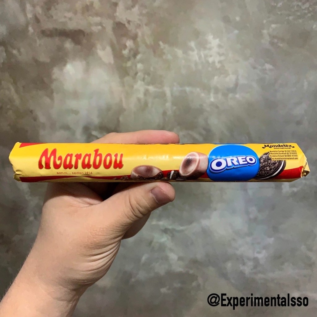 Marabou é uma marca Sueca de chocolates da Mondelez. Ela equivalente a Lacta aqui no Brasil. Isso significa que ala tem alguma versões de chocolates com Oreo. Esse aqui nós compramos numa loja de doces importados em Londres. Apesar do pacote ser relativamente grande, os chocolates são bem pequenos. São pequenas rodinhas com um formato concavo no meio. Diferente da maioria dos chocolates sabor Oreo que já experimentamos, esse aqui não tem recheio! Ele é simplesmente chocolate ao leite com “micro” pedacinhos de biscoito misturados. É bem gostoso, lembra o chocolate ao leite da Lacta, mesmo assim, senti falta de um recheio cremoso…