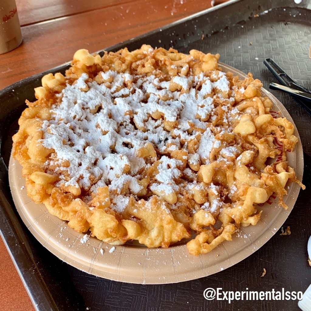 Curtiram a pizza que postamos ontem? ☺️ Essa aqui é outra dica que temos pra galera que está na Disney! Funnel Cake, o “Bolo de Funil” é servido em vários parques da Disney, o mais tradicional é esse aí da foto, que tem apenas açúcar de confeiteiro polvilhado por cima, e acompanha um potinho de Maple Syrup. Mas existem outros “sabores” e “recheios”, geralmente envolvem frutas com caldas, chantilly, sorvete e chocolate. A massa do bolo é frita e tem um sabor muito semelhante a bolinho de chuva. É muito gostoso! Recomendamos pra quem esqueceu de tomar o café da manhã antes de ir pro parque ou pra hora do lanche da tarde! 👍 ⠀