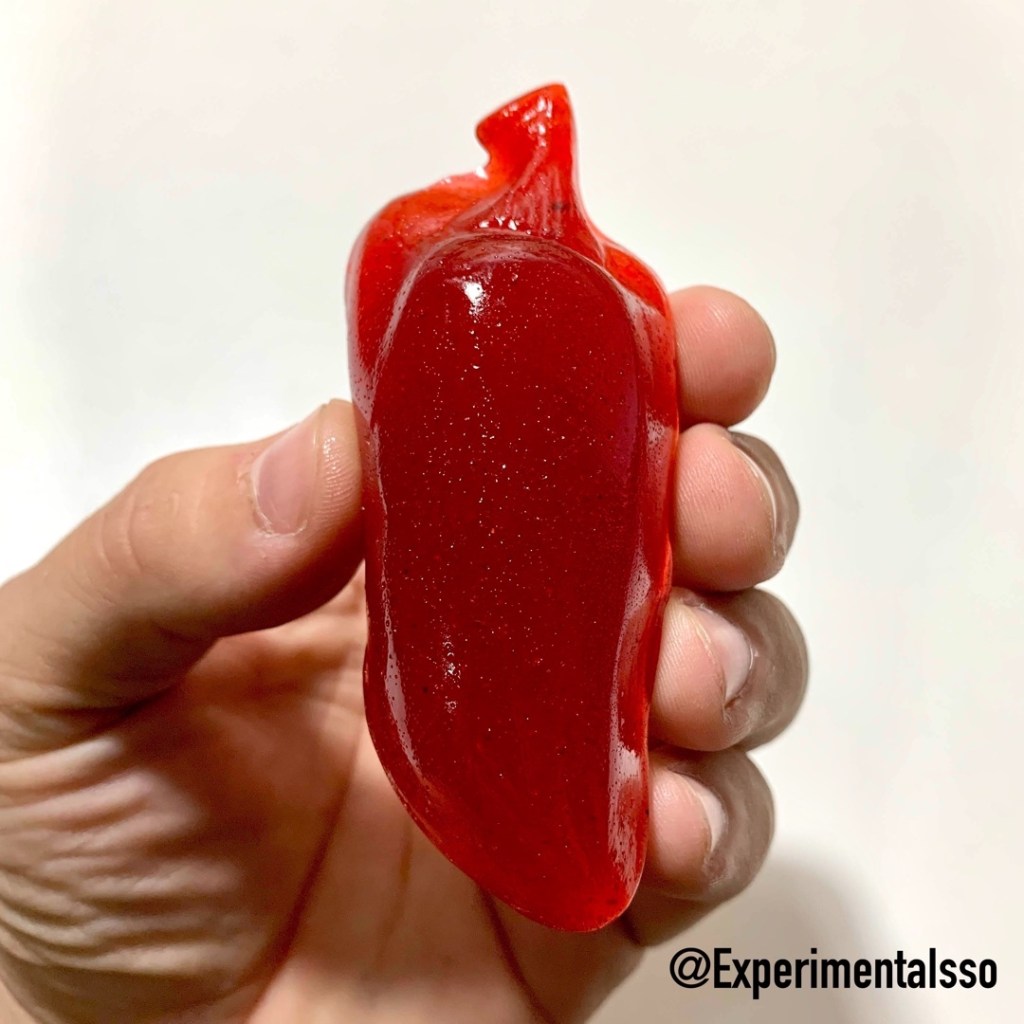 Se você gosta de pimenta e de bala de gelatina, vai ficar louco com isso aqui! Não tem segredo nessa bala, são 50g de gelatina sabor cereja, num formato de pimenta. Ah claro…Ela é feita com a pimenta “Ghost Pepper”, considerada uma das pimentas mais fortes do mundo! Cometi o erro de morder direto um pedacinho da ponta da bala…🔥🔥🔥🔥🔥🔥🥵 Eu gosto muito de comida apimentada, mas essa bala é algo insano de picante! 😂 A porção recomendada pra deixar a língua quase dormente é de menos de 0,5g!😂É muito picante mesmo! Mas vale a pena experimentar com os amigos e ver a reação deles! 😅⠀