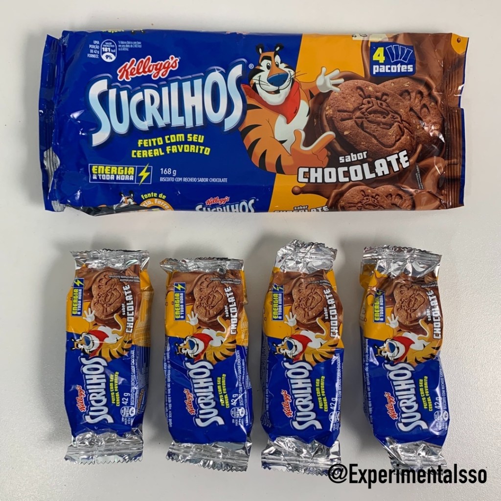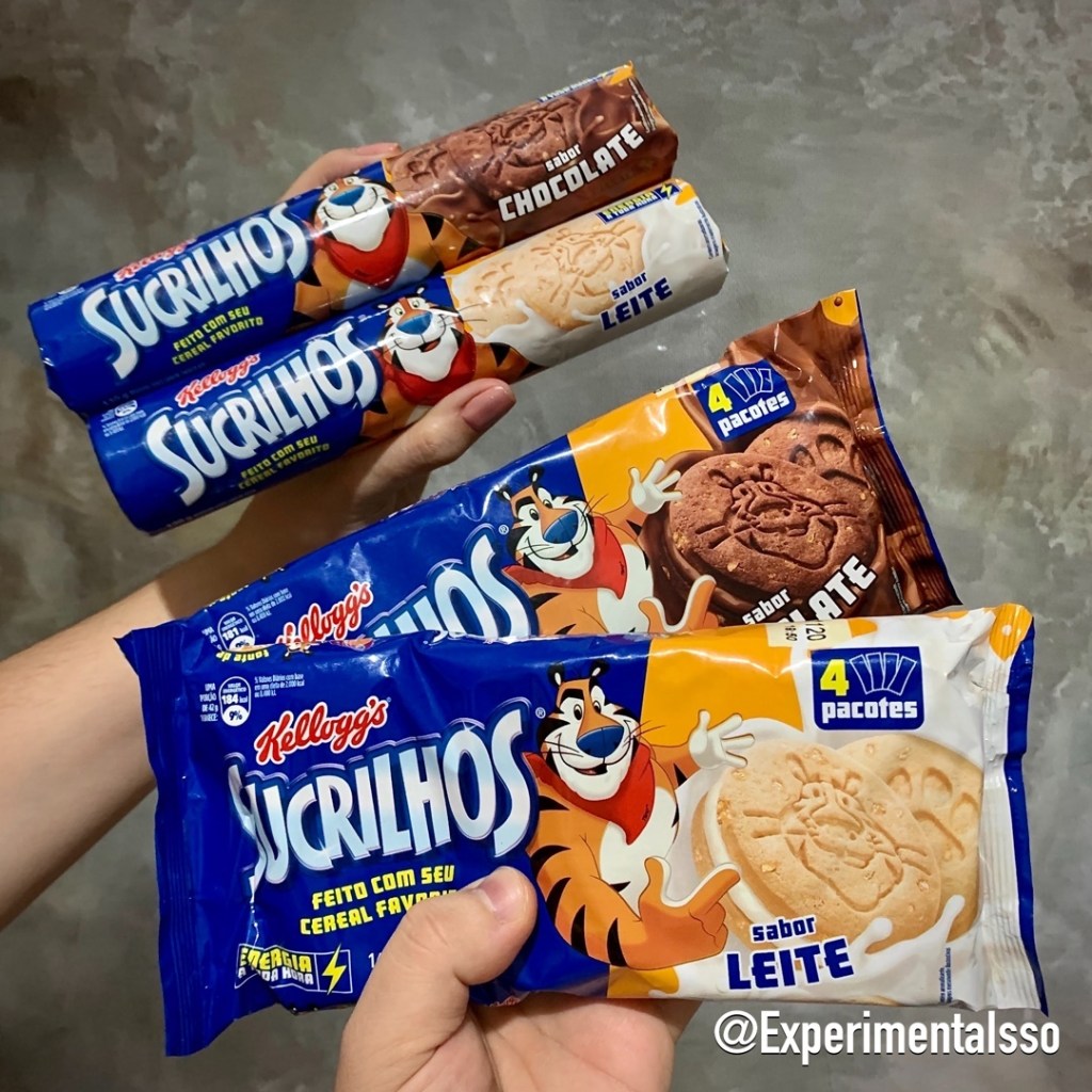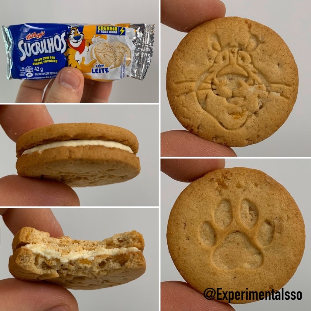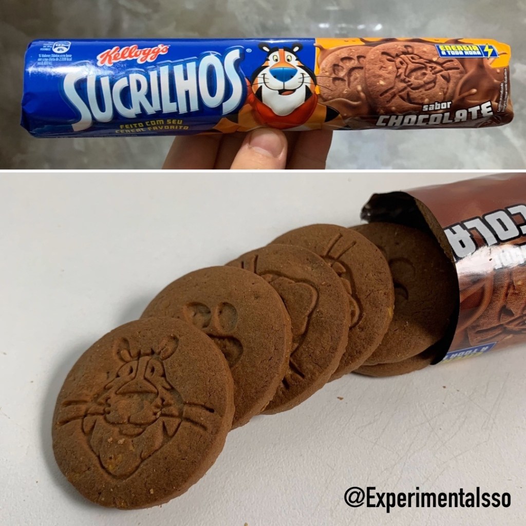 Pra começar os biscoitos não tem gosto de cereal ou Sucrilhos, eles tem sabor de biscoito de leite e biscoito de chocolate 😅 com pequenos pedacinhos de Sucrilhos misturados. E são bem pequenininhos! 😂 A sensação é que você está comendo uma bolacha com grãos de açúcar cristal.⠀