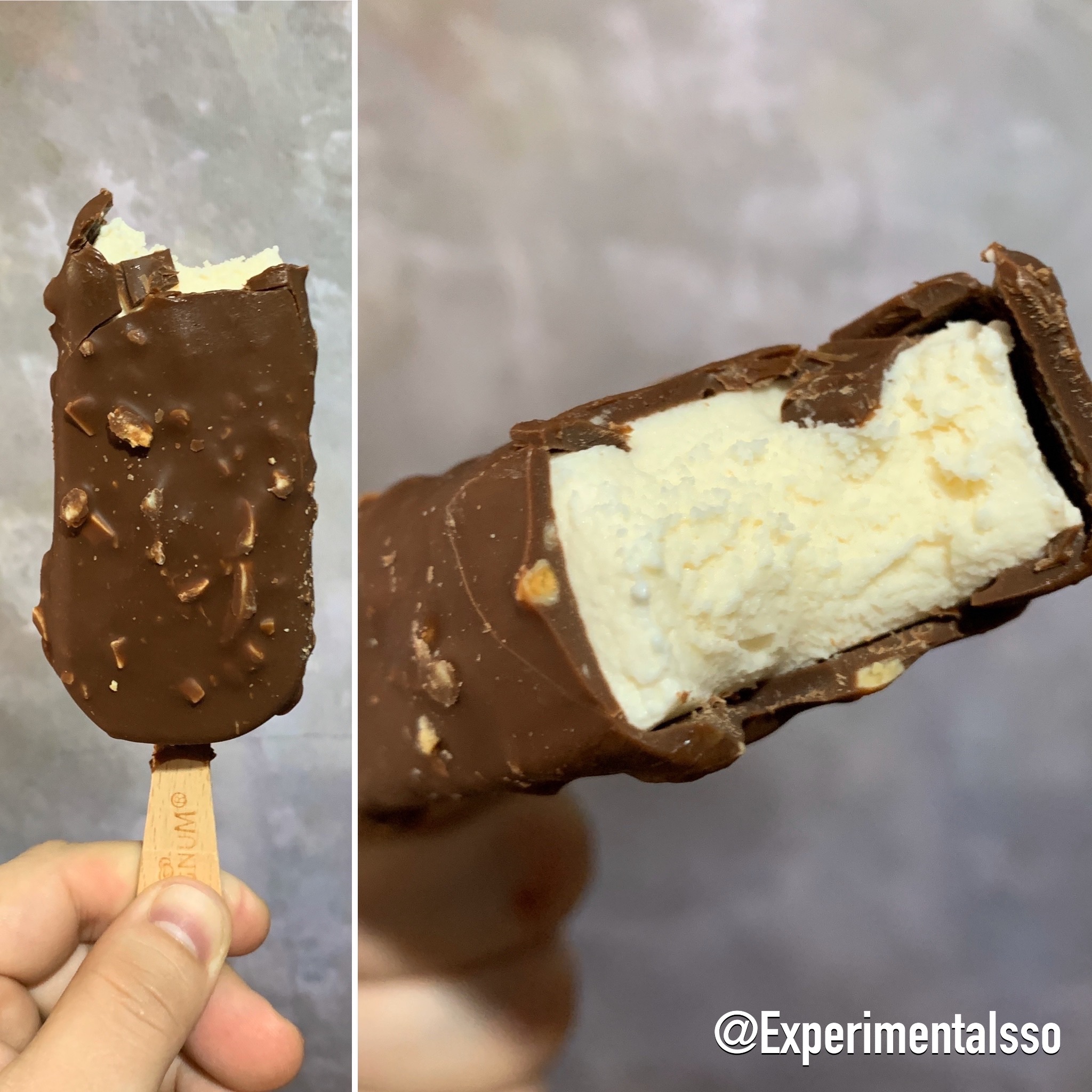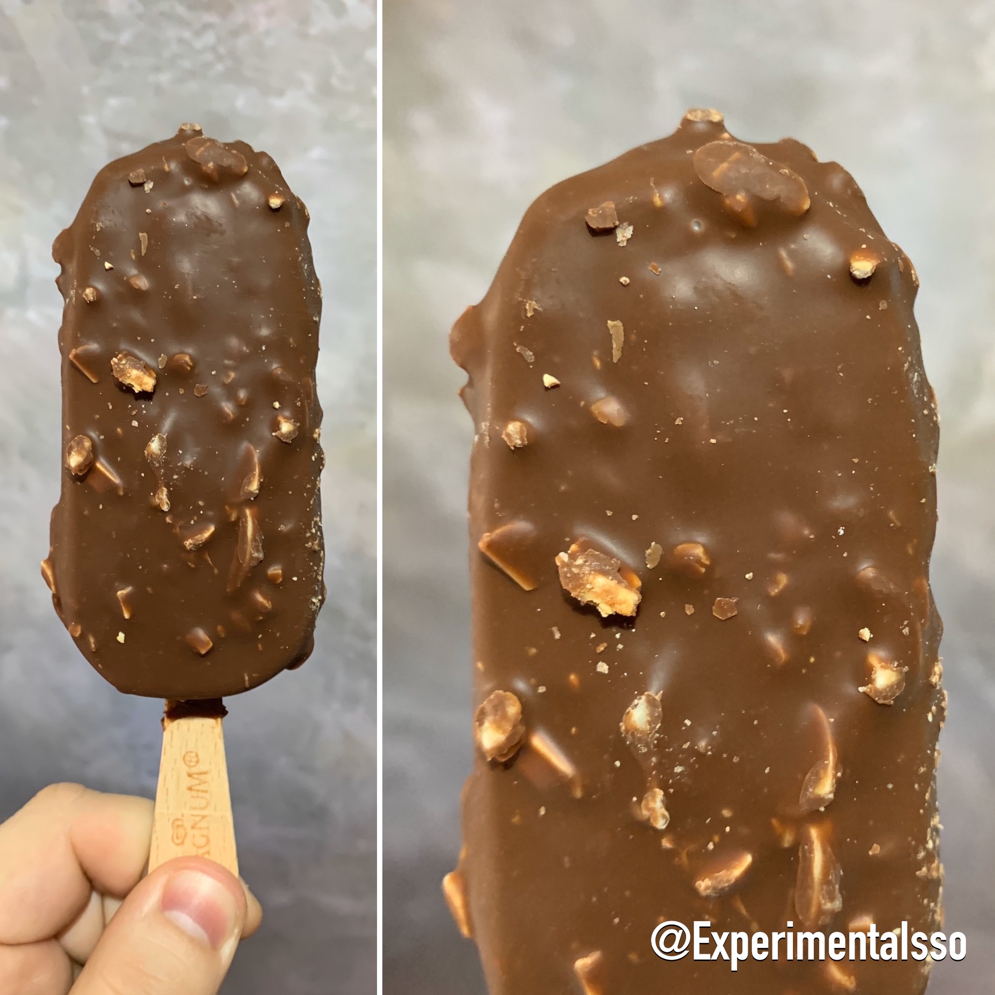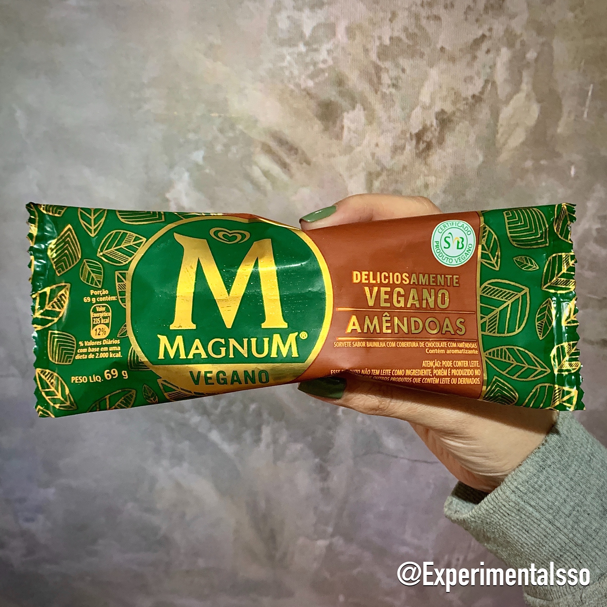 O sabor do sorvete é muito parecido com um Magnum tradicional, com sorvete sabor baunilha e cobertura de chocolate com amêndoas. Em termos de sabor e textura, essa versão vegana parece ser menos doce. A textura do sorvete é muito parecida com um Magnum “tradicional” e a casquinha de chocolate continua bem crocante.