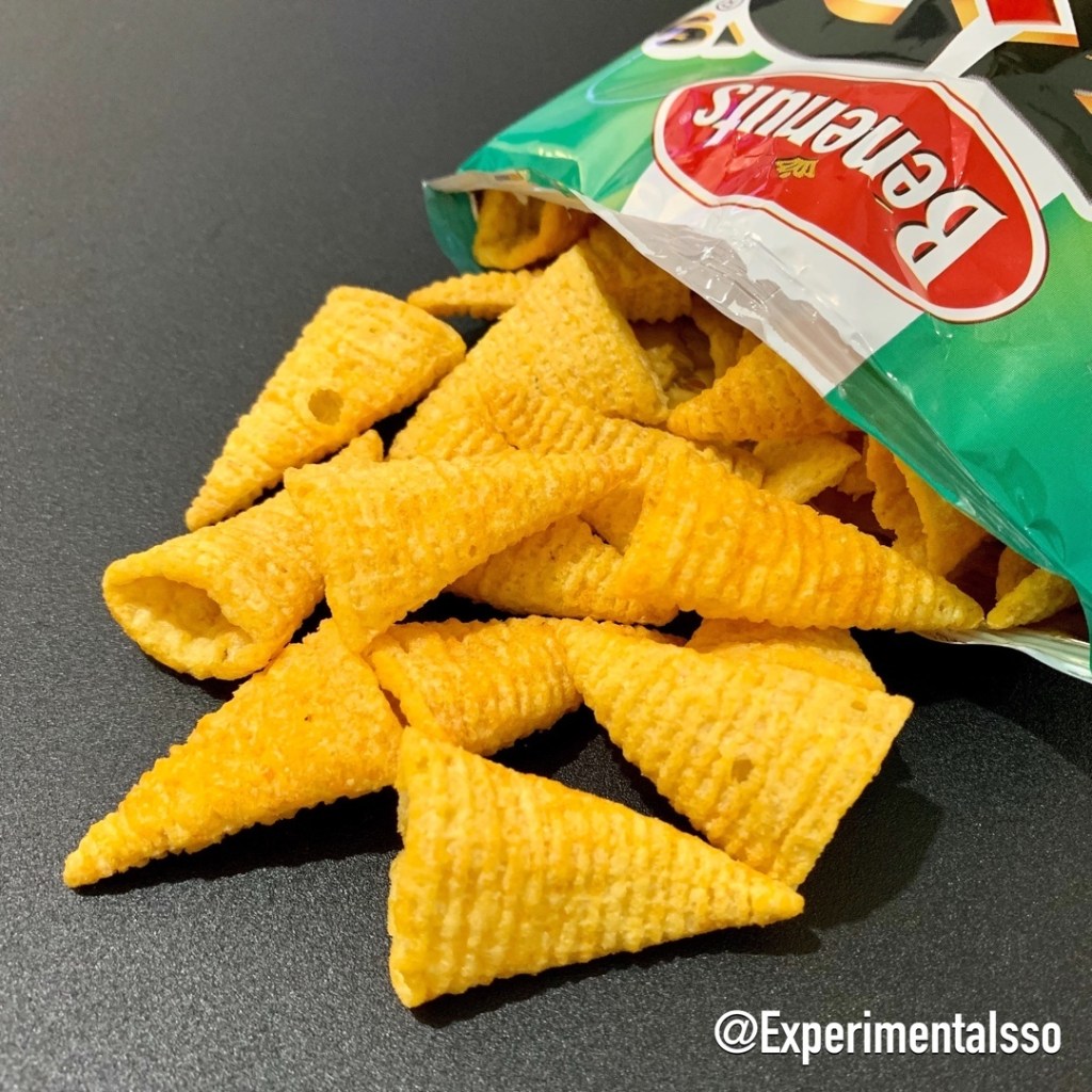 Mais uma versão do salgadinho Bugles que encontramos enquanto viajávamos. Dessa vez foi no Carrefour da França, e o sabor desse aqui lembrava muito o sabor do nosso Cheetos Requeijão!⠀