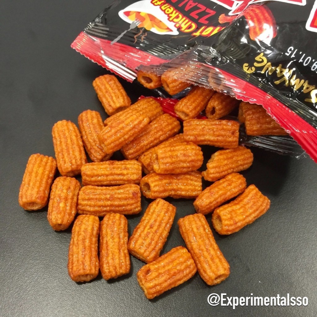 Na verdade as expectativas não foram superadas nesse aqui…😢 Se alguém já experimentou algum desses lamens coreanos da Samyang que geralmente tem esse “galinho” na embalagem, sabe que eles são MUUITO apimentados! E esse salgadinho parece ser livremente inspirado no lamen, porque a “picancia” dele é muito aceitável! 😅 Não estou dizendo que seja pouco apimentado, mas comparado ao lamen é muito fraquinho. O salgadinho tem um toque doce também, como se tivesse uma camada caramelizado por cima. Fora isso ele tem uma textura que lembra Cheetos e sabor de frango! 👍⠀
