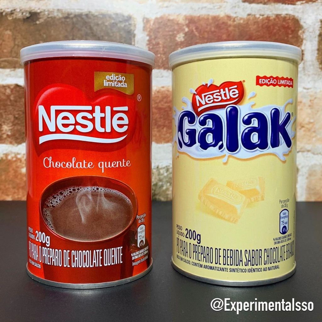 Ainda da tempo de experimentar os achocolatados especiais da Nestlé! Já vamos dizer que o melhor é o chocolate quente, e apesar de dizer quente na embalagem, o melhor é fazer com leite gelado! Fica extremamente cremoso! 👌 O achocolatado Galak não foi muito bem recebido pela galera, e realmente é difícil dizer que ele se pareça com o chocolate mesmo.