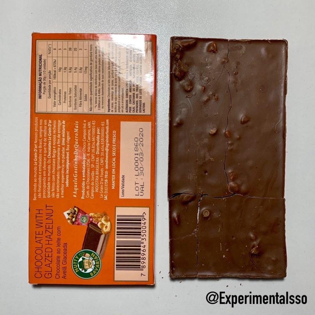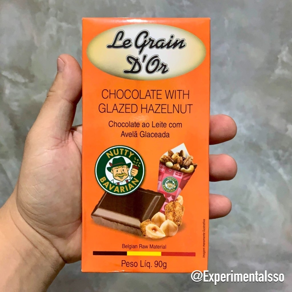 Essa é uma das 5 barras de chocolate com Nuts da Nutty Bavarian! Ela é feita com chocolate belga ao leite e tem pedaços de avelã glaceada misturadas! E são iguaizinhas as nuts dos quioseques, ou seja, deliciosas! .