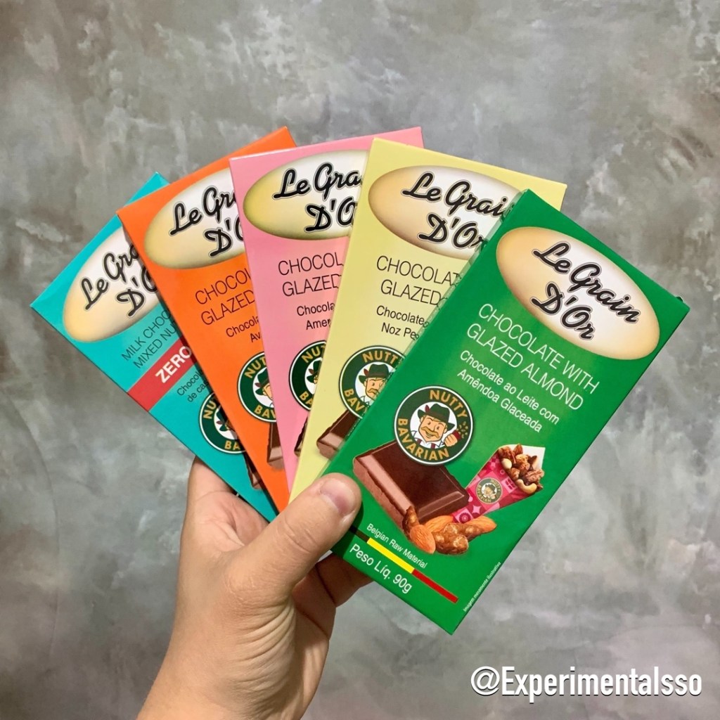 Se existe alguma forma de deixar as Nuts da Nutty Bavarian mais gostosas é essa! A Lê Grain D’or criou 5 barras de chocolates com Nuts da Nutty Bavarian! Cada uma é feita com chocolate belga misturado com um tipo de Nut diferente! Tem barra com Amêndoa, barra com Noz Pecã, Barra com amendoim, barra com avelã, e uma barra zero açúcar com castanhas e uva passas! É muuuuito delicioso! Vamos fazer um post sobre cada barra pra mostrar pra vocês cada detalhe! Mas de qualquer forma, recomendamos experimentar!