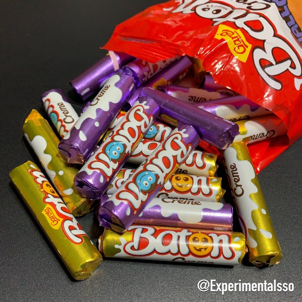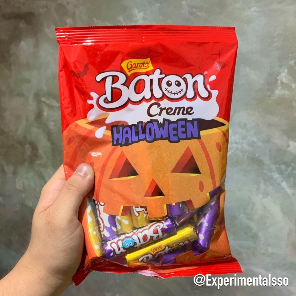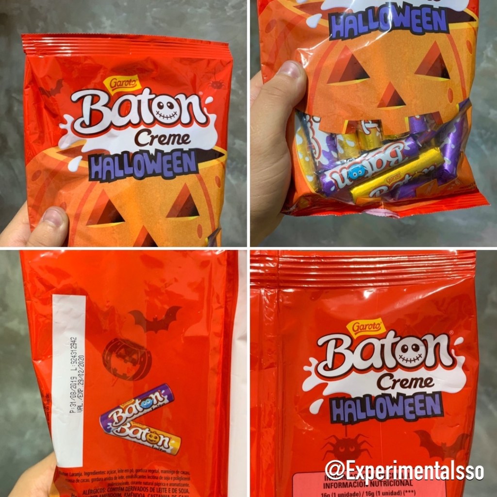 Esse batom de Halloween é muito gostoso e perfeito pra você distribuir pras crianças no dia 31! Apesar de ter duas embalagens diferentes no pacote tudo é Batom Creme! Ou seja, tem o mesmo sabor! A diferença é que o da embalagem laranja tem recheio laranja e o da embalagem roxa tem recheio roxo! 😋