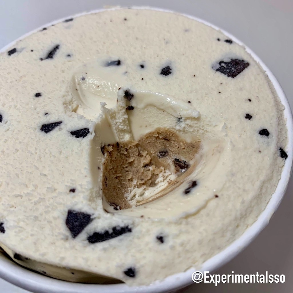 Estranhamente esse sorvete já é de sabor biscoito! 😅 Além disso vem pedacinhos de chocolate misturados e massa de biscoito no meio do sorvete! É muito gostoso! Mas poderia vir mais massa de biscoito! 😂