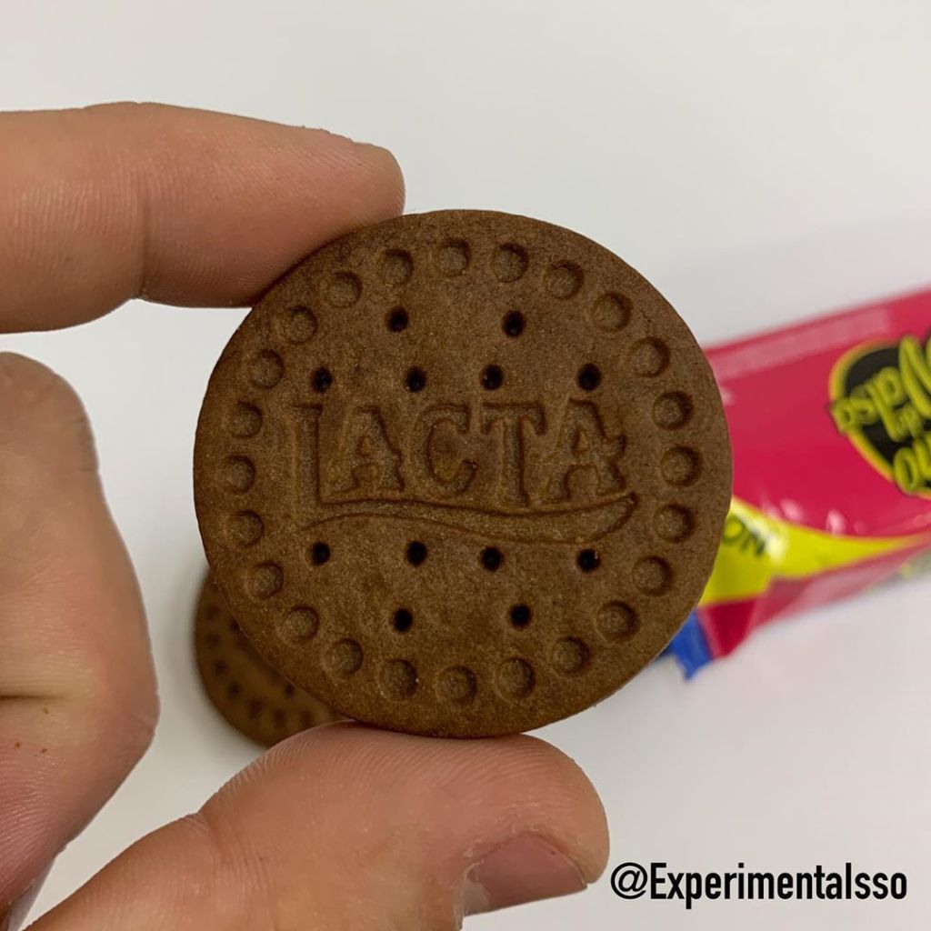 Mais um sabor pra linha de biscoitos recheados da Lacta! E na minha opinião é um dos mais parecidos com o chocolate “de verdade”! ☺️ O biscoito tem esse recheio sabor amendoim que lembra muito o recheio do bombom! 😋 Em geral o biscoito é bem leve e não é muito doce. .