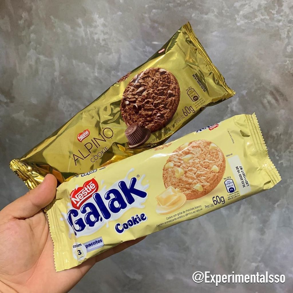 Mais um produto de Galak foi lançado, e pra nossa surpresa um de Alpino também! 😱 Os Cookies são gostosos, mas poderia vir mais gotas de chocolate!😅O de Galak realmente foi o que mais gostamos, é crocante e realmente lembra um pouco o sabor do chocolate. O de Alpino estava meio queimadinho e acho que isso comprometeu um pouco o sabor do Cookie…😢 Mas no geral é gostoso e como vem separados em pequenos pacotes de 2 unidades é perfeito pra carregar na mochila, na bolsa, no bolso…😂