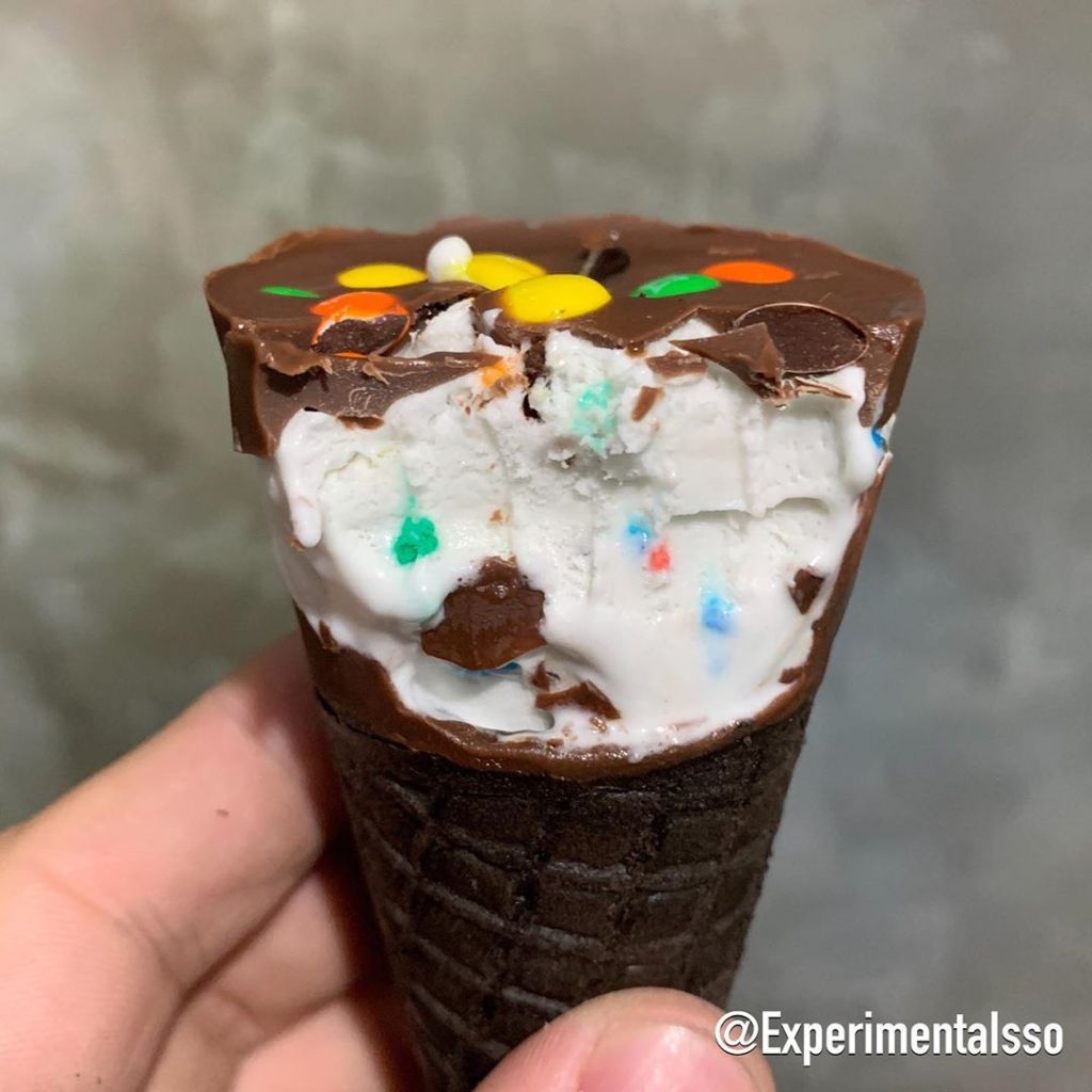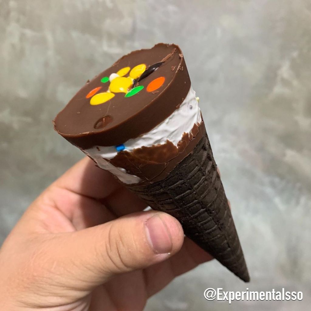 A Kibon acaba de lançar essa sobremesa incrível aqui no Brasil! O Cornetto de M&M’s tem casquinha sabor chocolate, a massa do sorvete é sabor baunilha, com recheio de chocolate e além da clássica casquinha de chocolate na parte de baixo, na parte de cima o chocolate vem coberto com M&M’s Mini! 😍 É uma delícia! 😋